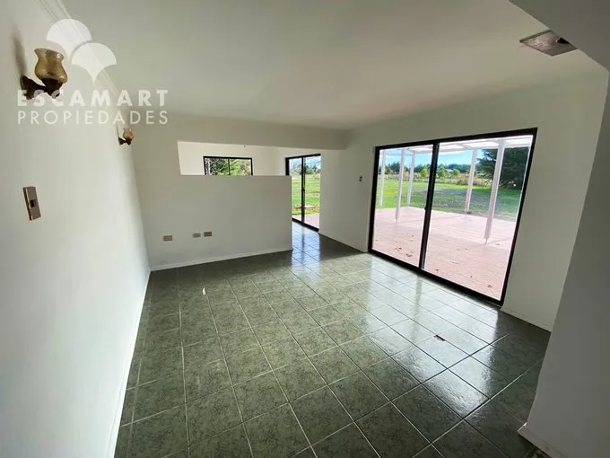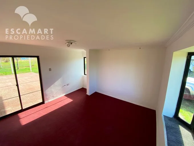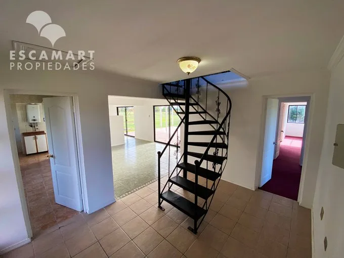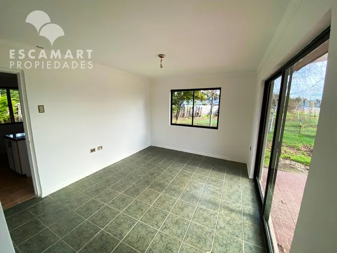 No te pierdas esta opción de Arriendo: de Casa en Parcela Country Santa Eliana, Los Ángeles Amplia Casa en Parcela plana de 5.000m2 rectangular en Country Santa Eliana, Los Ángeles. Ubicación céntrica, a 8km del centro de la ciudad y cercano a carretera Ruta 5Sur. Perfecta para desconectarse e disfrutar de la familia así como la tranquilidad de la naturaleza en un entorno tranquilo, agradable y seguro. Condominio, el cual cuenta con acceso controlado, portería y recepción 24/7. CARACTERÍSTICAS • Amplio Hall de entrada y Living con salida a Terraza. • Cocina amoblada, Logia y Comedor separado. • Cuarto Principal en Suite con vista al jardín y salida a la terraza. • 3 Dormitorios con vista al jardín, cualquiera puede ser usada como oficina. • 2 Baños con tina. • Pieza de Servicio la cual incluye baño. • Terraza techada con piso de cerámica. • 2 Estacionamientos techados. • Bodega y Leñera al exterior. ¿Tienes consultas o quieres coordinar una visita? Escríbenos al WhatsApp +569 6733 4534. Escamart Propiedades