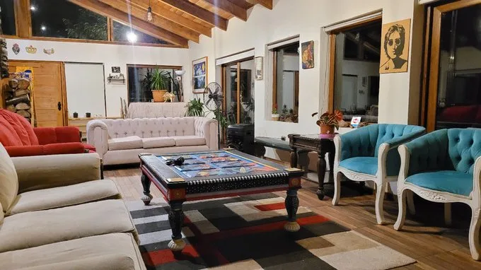 En Arriendo hermosa casa que cuenta con acceso así como vista a lago: Al valor publicado para Arriendo inmediato primer nivel de la casa complemente equipado y amoblado tal como se aprecia en fotos. Habitación 1,2 y 3 cuentan con vista al lago (4 camas por habitación). Habitación 4 y 5 con vista a la montaña (3 camas por habitación). Factibilidad de arrendar casa completa por $3.500.000, sumando segundo piso con amplia terraza, habitación extra para 2 personas y baño con jacuzzi + una cabaña totalmente equipada y amoblada para 2 personas.
