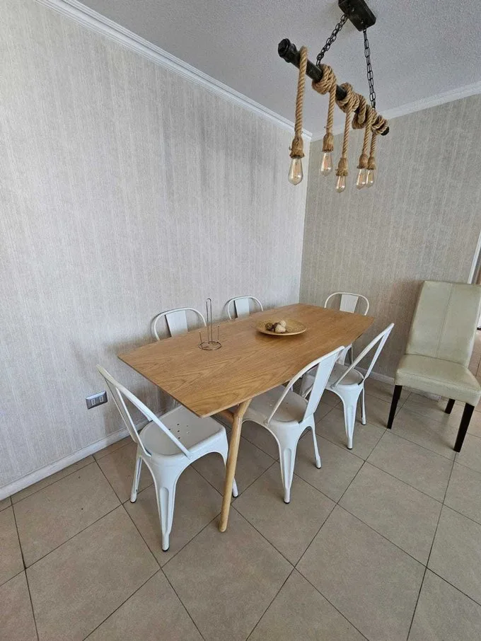 Departamento en Arriendo Condominio la cual incluye Áreas Comunes Se disponible en Arriendo cómodo y moderno departamento totalmente amoblado, ideal para quienes buscan confort y adecuada ubicación. Características del departamento amoblado: 2 habitaciones 2 baños Cocina cerrada con cajonería alta y baja Living comedor con acceso a balcón 1 estacionamiento techado Equipamiento del condominio: Parque y áreas verdes, Juegos infantiles, Quinchos para reuniones, Canchas de fútbol, Salón recreativo, Área de lavandería, Bicicletero, Seguridad de Conserjería y control de accesos 24/7, Cámaras de seguridad en todo el condominio?? Valor de Arriendo: $850.000 pesos chilenos?? Ubicado en un localidad de alta conectividad, conexion avenidas principales, av. Circunvalacion, av balmaceda. Cercano a servicios y accesos principales.