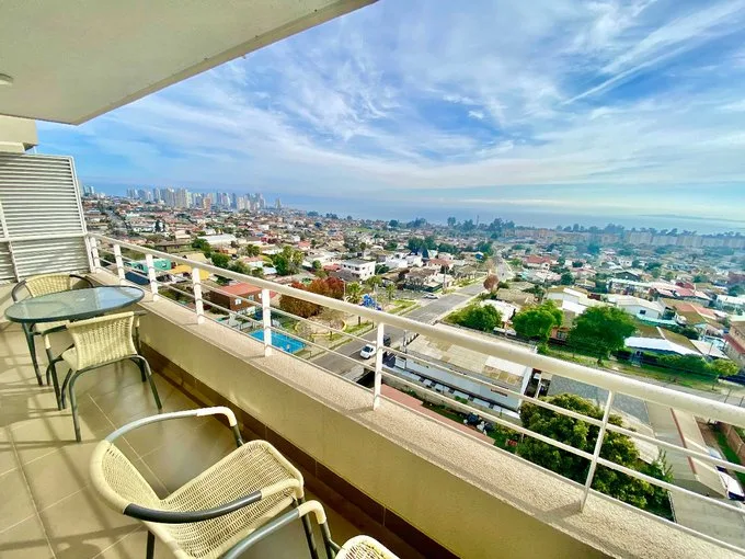 Excelente oportunidad de Arriendo: DEPARTAMENTO VISTA DESPEJADA ALTAMAR - En lomas de Montemar -CONCÓN 2 Dormitorios 2 Baños Estacionamiento subterráneo Piso 8 Vista Norte Oriente Sin Amoblar, con cortinas roller y se entrega con luminaria led total. Cercano a: Parque Central Los Abedules, Colegios como el Sek y Saint Margarets, Supermercados y transporte. Se arrienda departamento en Concón, Lomas de Montemar, vista despejada al océano. Acompáñenme a conocerlo. Este moderno y cómodo departamento cuenta con dos dormitorios, dos cuartos de baño así como un estacionamiento subterráneo. Posee cuarenta y nueve metros construidos, asimismo de una terraza de diez metros cuadrados con vista despejada al océano. Su habitación principal es dentro de suite, con una hermosa vista al norte y también salida a la terraza, lo que añade un atractivo estético que proporciona un lugar relajante para disfrutar de las vistas y el entorno. Esta habitación también cuenta con dos clósets y un baño dotado de tina. En el centro del departamento se ubica el área de espacio de cocina abierta y hall de acceso o recibidor, equipado con un comedor que, unidos al living, crean un ambiente conectado y cómodo, facilitando la interacción así como fluidez entre las diferentes áreas de la vivienda. El segundo dormitorio también cuenta con una vista despejada al norte y oriente. Posee un baño dotado con tina. También cuenta con dos clósets, uno habilitado para vestuario y también posee un clóset el cual incluye conexión a lavadora. Sus espacios comunes consideran: sala de eventos amplia así como moderna de doble altura e equipada por completo para recibir a tus invitados. Piscina exterior temperada. Bicicletero en el subterráneo cerrado, junto a su estacionamiento, además de recepción veinticuatro siete. Valor mensual $630.000 Gastos comunes $120.000 pesos