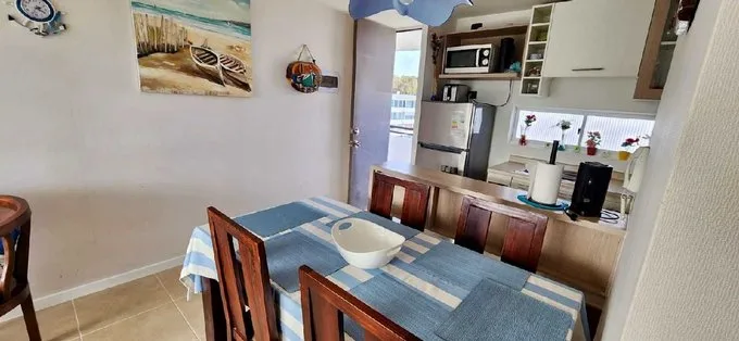 Vive todo el año junto al mar en un exclusivo sector! Disfruta de la amplitud, la tranquilidad y el estilo de vida costero con este acogedor departamento en Arriendo año corrido, ubicado en un exclusivo sector de El Tabo, Región de Valparaíso. Este departamento incluye tres recámaras amplios e luminosos, ideales para el descanso y la comodidad, además de dos baños completos con un diseño funcional y moderno. Sus espacios bien distribuidos ofrecen una notable sensación de espacialidad, permitiéndote disfrutar de un ambiente acogedor y confortable. La terraza privada de 7m es perfecta para relajarte, disfrutar de la brisa marina y admirar los atardeceres. Con una superficie construida de 53 m, este departamento combina diseño y funcionalidad a la perfección. También incluye estacionamiento exclusivo y estacionamiento de visitas. Ubicado en un condominio de primer nivel, este lugar ofrece piscina para refrescarse en los días soleados, quinchos ideales para compartir con familia y amigos, y hermosas áreas verdes que invitan al descanso y la desconexión. Además, cuenta con seguridad 24/7 y acceso controlado para brindarte tranquilidad y protección. Su ubicación privilegiada te permitirá vivir en un entorno sereno y natural, a solo pasos de la playa y la cual cuenta con acceso a restaurantes, establecimientos y servicios esenciales. Valor de Arriendo: $450.000 y gastos comunes de $70.000. No dejes pasar esta oportunidad única. Contáctanos e agenda tu visita.
