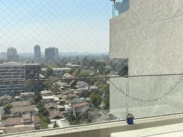 EXQUISITO, ILUMINADO, NORTE, PISO ALTO, EDIFICIO NUEVO, METRO SIMON BOLIVAR!! Muy lindo e iluminado Departamento destinado a parejas solas o ejecutivos: Este departamento casi nuevo esta magníficamente situado a un paso de Avenida Ossa junto con Mall Plaza Egaña, con Cines y todo el Comercio de Avenida Irarrázabal a un par de calles! Este Apartamento, ademas de de diseño moderno, tiene muy buena Seguridad con Recepción y Conserjes 24-24, excelentes áreas comunes con Jardines, Quinchos; Piscina, Gimnasio, Lavanderia, Casilleros de Correspondencia, Estacionamientos de Visita y entrada particular electrónica. Consta de una Recámara y un Baño con Toilette aparte, Walking Closet y amplia Terraza que abarca todo el frente del Dormitorio así como del Estar Comedor, todos con pisos en porcelanato imitación maderas claras. En el área de Trabajo un gran Mesón de SilexStone o similar con encimera, Campana, Lámpara y espaciosos cajones. Mueble alto con Espacio para lavavajillas, además de Horno Microondas y Convencional, Lavaplatos de acero, Luminarias, Cortinas. Con un Estacionamiento y Bodega en Primer Subterráneo, es la OPCIÓN IDEAL muy cerca de todo, magnifica Locomoción pública e nada de ruido! Recomiendo ampliamente su VISITA!!