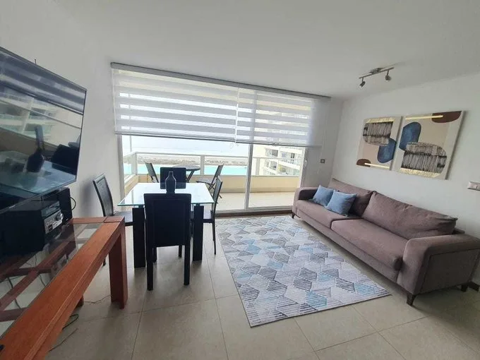 No te pierdas esta opción de Arriendo: Descubre este espectacular departamento dentro de la hermosa cuidad de La Serena! En el extraordinario Complejo Turístico Laguna del Mar. Presentamos un exclusivo departamento amoblado y equipado para 4 personas, en una ubicación estratégica, ideal para quienes buscan conexión el cual incluye lo mejor de la ciudad. Este espacioso hogar cuenta con 2 dormitorios y 2 baños. Podrás estacionar con total tranquilidad, ya que incluye 1 estacionamiento. Con aproximadamente 60 m de espacio construido y una encantadora terraza de aproximadamente 8 m, con vista al mar, tendrás el espacio apropiada para disfrutar el aire libre e contemplar las maravillosas vistas de La Serena. El Complejo Turístico Laguna del Mar combina comodidad, deporte y descanso en un entorno único frente al mar, dispone de piscinas al aire libre, una enorme laguna artificial óptimo para deportes náuticos, cancha de tenis y zonas de juegos infantiles. Además, ofrece gimnasio, jardines, parrillas y servicios de conserjería con personal bilingüe. Su sitio es privilegiada: Acceso directo a la Playa del Faro, cercano al Faro Monumental, la Avenida del Mar, restaurantes, supermercados, biblioteca junto con centro de la cuidad. Un lugar ideal destinado a vacaciones familiares, escapadas románticas o estadías con amigos. TEMPORADA BAJA (hasta el 1 de diciembre) Valor de Arriendo por día temporada baja: $60.000 incluye estacionamiento. Mínimo 3 noches ($65.000 si son 2 noches) TEMPORADA ALTA (desde el 2 de diciembre) Valor Arriendo por día temporada alta (enero): $100.000 incluye estacionamiento. Valor Arriendo por día temporada alta (febrero): $120.000 incluye estacionamiento. Capacidad para 4 personas. Mínimo 3 noches. No se aceptan mascotas. Incluye sábanas y Wifi. Aseo de salida $35.000 en todas las temporadas. Contáctanos hoy mismo para más detalles y ven a conocerlo. Te esperamos en La Serena!