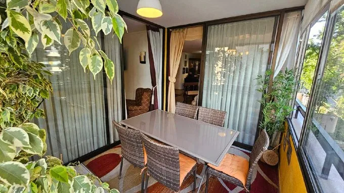 Vive con confort y estilo dentro de este amplio piso amoblado, ideal para una estancia inolvidable! Con capacidad para 6 personas, este increíble departamento ofrece 3 grandes habitaciones, siendo la principal un verdadero oasis con baño completo privado, walk-in closet y salida a una espacio exterior exclusiva. Además, dispone con un segundo servicio sanitario completo con tina así como varios closets en los pasillos para mayor comodidad. La cocina, de generosas dimensiones, está completamente equipada y cuenta con espacio ideal para una logia y un desayunador diario. Incluye lavadora, secadora, refrigerador de dos puertas y todos los electrodomésticos que necesitas! Disfruta de una espaciosa sala de estar de 60 metros cuadrados, diseñada para el descanso y la diversión: un área de living, un bar con TV y un comedor donde podrás relajarte y compartir momentos únicos. Además, el departamento incluye 2 estacionamientos y una pieza de servicio con baño. Gastos comunes: $190.000 Agenda tu visita ahora y ven a conocer tu próximo hogar!