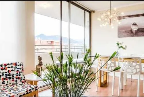 Departamentos completamente amoblado con sus amplios 80 m 2D+2B+2E+Habitación principal con aire acondicionado, Imagina disfrutar de atardeceres únicos desde su terraza de 12 m, un rincón perfecto para relajarte al final del día Ubicado en un edificio moderno de 18 pisos, este hogar combina diseño contemporáneo con funcionalidad, ofreciendo una experiencia de vida inigualable.a pasos del Metro Manquehue. Edificio: Lavandería, juegos para niños, piscina, áreas verdes. Por un precio de UF 34 Gasto común 200.000 Disponibilidad desde 06 diciembre 2025 Contactar a través de WhatsApp