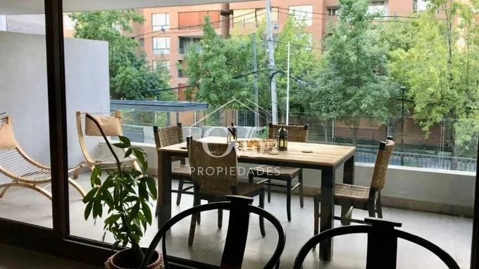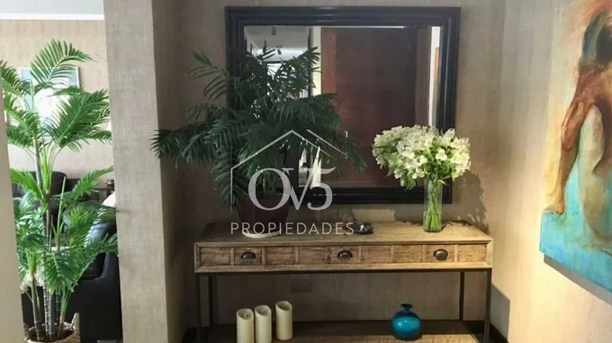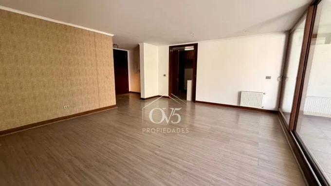 Estupendo departamento, excelente ubicación y orientación. Calle tranquila y arbolada, al lado de autopista y Portal La Dehesa. 3D / 3B Amplio hall de acceso con baño de visitas Sala y comedor con salida a terraza muy grande con linda vista, orientación oriente. Área de cocina semi incorporada dotado de puerta corredera; excelente loggia. Sala de estar. 2 dormitorios que comparten un baño Amplio alcoba principal en suite con muy buen walk in closet, baño amplio con luz natural. 2 estacionamientos y una bodega. Edificio con conserjería 24/7 muy bien decorada. Estacionamientos visita techados Piscina GC $380.000 OV5 PROPIEDADES [email protected] wsp +569 95394000
