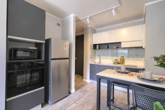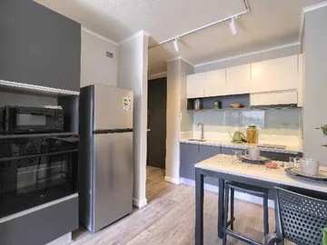 Aprovecha estas promociones! +Sin comisión de corretaje +Garantía en cuotas Vive la Experiencia Multifamily! En Blue Home somos únicos dueños de nuestros edificios lo que nos permite entregar la mejor experiencia de Arriendo en Chile. Contamos con espacios comunes de primer nivel y equipos profesionales presentes en cada uno de nuestros edificios para ayudarte a solucionar cualquier requerimiento que tengas! CARACTERÍSTICAS DE LA PROPIEDAD: Cortinas Roller Cubiertos y Vajillas Microondas Sofa de cama Si necesitas estacionamiento y/o bodegas pregunta a tu ejecutivo por disponibilidad y precio! REQUISITOS: En Blue Home nuestra mayor preocupación son nuestros residentes, por lo que te pediremos los siguientes requisitos para poder postular a vivir con nosotros: Tu Arriendo líquida debe ser al menos 3 veces el valor del Arriendo. Si vives con alguien, pueden sumar ambas Arriendo, en cuyo caso la suma debe ser 4 veces el valor del Arriendo. Debes contar con un Aval No puedes tener deudas morosas (DICOM) Adicionalmente, más adelante en el proceso, te pediremos ciertos documentos para que los tengas a mano: 12 últimas cotizaciones 3 últimas liquidaciones de sueldo Fotos y videos son referenciales Postula con nosotros y disfruta la nueva experiencia de Arriendo!