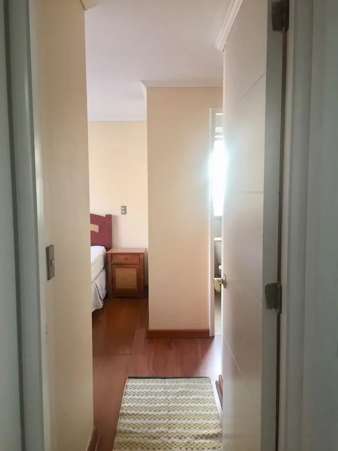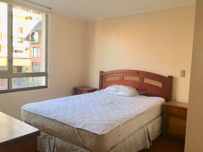 Departamento cuenta con 2 dormitorios, uno amplio con cama de 2 plazas, veladores, cómoda y clóset y otro dormitorio pequeño con cama de 1 plaza, velador y clóset Tiene 2 baños completos, 1 estacionamiento en el subterráneo y 1 bodega. Con una construcción de 60 metros cuadrados y ubicado en un edificio de 7 pisos. No tiene terraza, cuenta que cuenta con una amplia cocina y loggia con lavadora. Tiene ascensor y está a pocas cuadras del metro Los Leones. Precio: CLP 700,000 y gastos comunes de $195.000 aprox Arriendo plazo mínimo un año Requisitos principales Titular e aval No tener dicom Primer mes de Arriendo, mes de garantía y comisión de corredor Disponible a fin de mes de diciembre