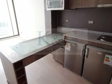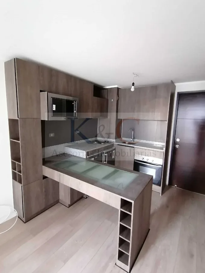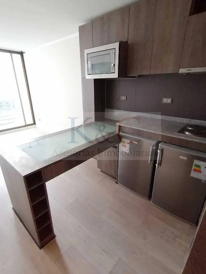 Gran oportunidad de Arriendo. Moderno y lindo apartamento en sector consolidado y residencial de la comuna de Santiago. Excelente comunicaciones vial y con una ubicación privilegiada, a pocos minutos de los metros Universidad Católica y Santa Lucía, ambas de la línea 1 y a 4 cuadras del metro Bustamante, Línea 5. Cercano a todo lo que necesites, a dos cuadras del Hospital de la Católica, centros médicos, centros comerciales, Universidades, notarías, supermercados, restaurantes, colegios, farmacias, parques, entre otros Programa: Sala con cocina americana full equipada con encimera de 4 platos, horno y campana eléctrica, incluye microondas, mini refrigerador así como congelador, espacio para lavadora. Un dormitorio extenso, principal en suite, un baño. Amplia terraza en sector de living área de comedor. La propiedad se entrega completamente pintada e en excelente estado. Opción de arrendar con estacionamiento. Superficie útil: 36 mt2. Superficie terraza: 4 mt2. Superficie total: 40 mt2. Piso 6. Vista Norte Edificio del año 2015, equipado con acogedores espacios comunes como salón multiuso, lavandería, gimnasio, quinchos, piscina. Seguridad 24hrs. Lugar ideal para una pareja la cual quiera vivir en un entorno seguro e protegido. Arriendo en valor UF equivalente en pesos: Arriendo sin estacionamiento: $310.000 Arriendo con estacionamiento: $370.000 Gastos comunes: $90.000 aprox. Más consumo de agua caliente.