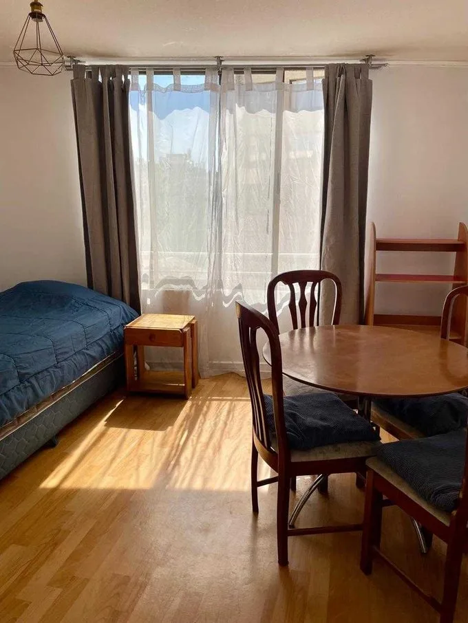 Dpto estudio AMOBLADO Cocina integrada 1 baño GGCC entre 40 y 45 Piso 8 oriente Edificio tiene lavandería, gimnasio y piscina cercano metro Moneda y U. Chile. Santiago