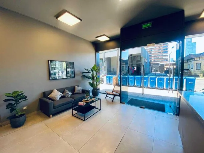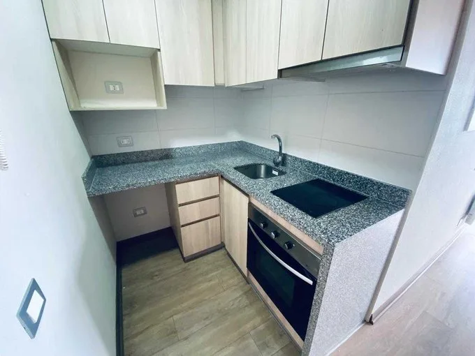 EN Arriendo DEPARTAMENTO STUDIO CENTRAL COMO NUEVO Edificio Vanguardia Center Dormitorio amplio, con closet 1 baño completo Cocina amoblada y equipada (encimera, horno y campana) Lámparas y cortinas Conexión para lavadora Ventanas termopanel PVC Calefacción eléctrica Orientación poniente 27 M2. Áreas comunes: Salón multiuso Lavandería Bicicletero Conserjería 24/7 Sin estacionamiento Sin Bodega Valor $ 315.000 + GGCC. GGCC $ 35.000.- aprox. Gestión Inmobiliaria Dúo
