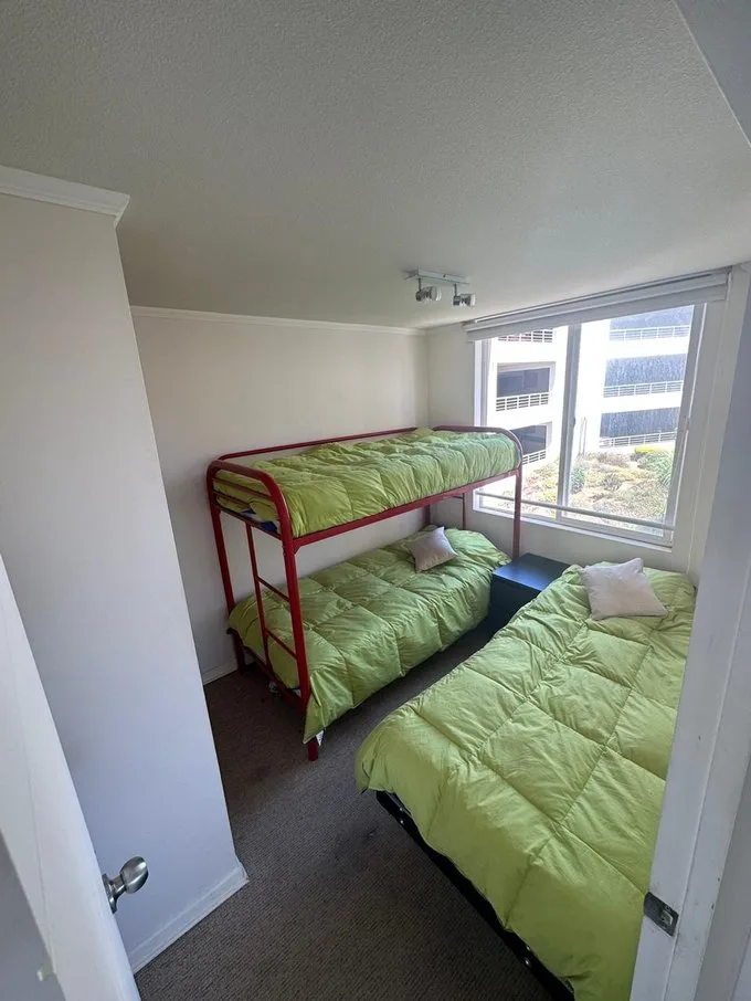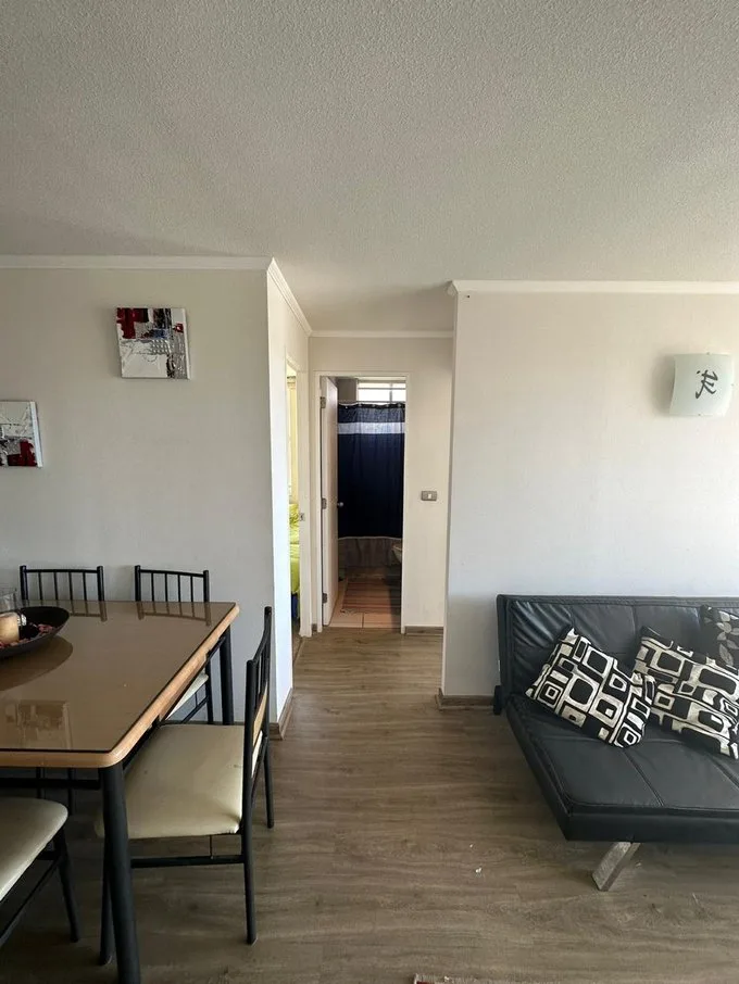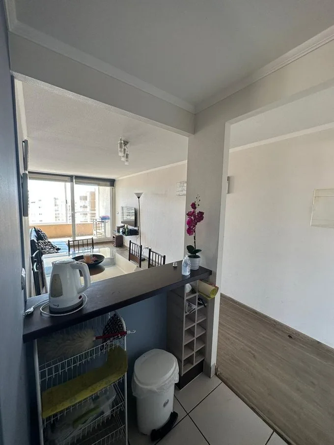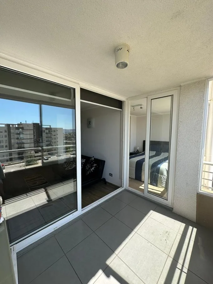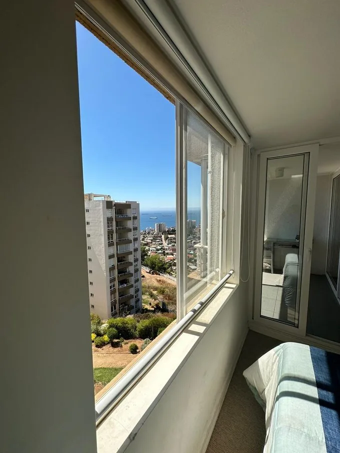 Se arrienda departamento año corrido completamenteamoblado, en espacio Agua Santa, Viña del Mar. Condominio Siete Mares. Cómodo departamento, con linda vistapanorámica, Living Comedor. Cuenta con 2 dormitorios, 1 baño. Dormitorio principal con cama de 2 plazas y segundo dormitorio con camarote y cama de 1 plaza, (que se puede retirar de acuerdo a lo que se necesite) Cocina equipada, refrigerador,hornos, cocina, arrocera, parrilla eléctrica, etc. Equipado para 4 a 5 personas T.V. 50 “ en living Cortinas roller doble Calefont automático. Área exterior cerrada que cuenta con ventanales ycortinas roller, que cuenta con vista Estacionamiento propio yestacionamiento ideal para visitas. Condominio muy seguro con control deacceso las 24 horas. CCTV. Se ubica a 10 minutos del centro de Viña del Mar, ensubida Agua Santa, altura Mirador Recreo, movilización y colectivos a mediacuadra del condominio. Piscina para adultos y para niños Quinchos panorámicos en la terrazadel torre residencial Sala multiuso, y lavandería. Valor Arriendo $ 400.000.- más GC. $100.000.-