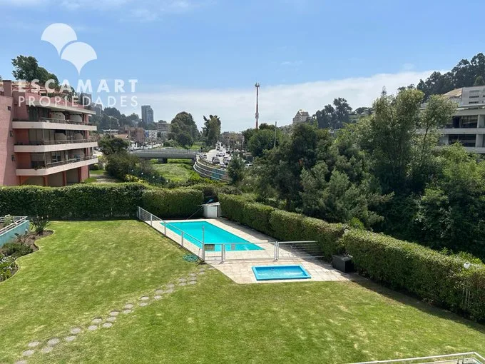 Arriendo de Departamento con destacada ubicación y buena conectividad en Vicuña Mackenna, Reñaca a pasos de supermercado Tottus, colegio Mackay, Facultad de Medicina de la Universidad de Valparaíso, transporte, locales comerciales, entre otros. Edificio con ascensor, acceso controlado y recepción 24/7, áreas comunes: jardín, piscina y lavandería. Atributos Amplio Living Comedor con salida a Terraza y vista al jardín. Cocina amoblada y equipada. Dormitorio Principal en Suite, dotado de closet, conexión tv y salida a Terraza.• 2do dormitorio, conexión tv y salida a Terraza. 2 Baño con tina. Amplia Terraza a lo largo del departamento con vista al jardín. Incluye Estacionamiento. Más información vía Whatsapp +569 6733 4534. Escamart Propiedades.