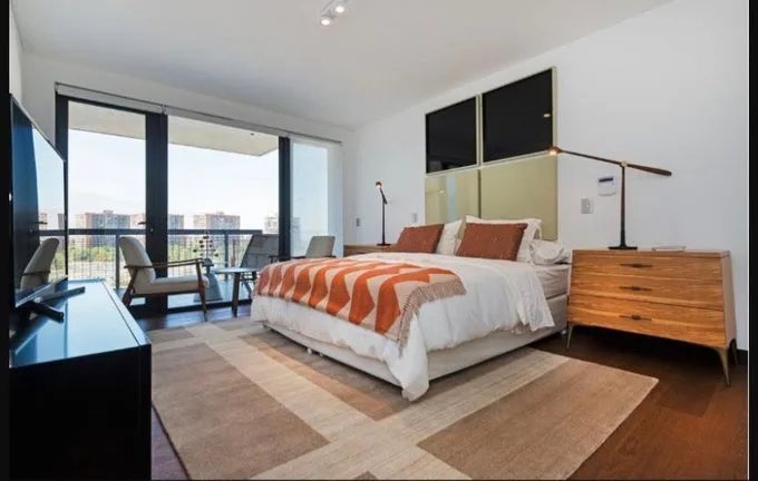 - Características Interiores: Aire acondicionado, Baño de servicio, Baño auxiliar, Bodega, Closet, Cocina integral, Comedor, Cámaras de seguridad, Estufa eléctrica, Equipado / Amoblado, Gimnasio, Parques públicos, Piso laminado, Sala de estar, Vista, Zona de lavandería