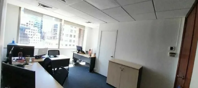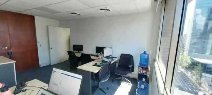 Oficina en Edificio ícono inserto en el Barrio Sanhattan, ubicado entre la Torre 2 del Costanera Center y la Torre Titanium La Portada. Cercano a Estación de Metro Tobalaba Militar - Línea 1 y 4. Rodeado de todo tipo de servicios en el sector (MUT, Bancos, farmacias, restaurantes, mall, hoteles, parking público, entre otros). Características principales: Piso 9. 40 m2 útil. 2 plantas libres. 1 baño. Aire acondicionado. Habilitada con opción amoblada por el mismo precio Arriendo. Gasto Común aprox. $140.000. **Opción Arriendo estacionamiento 4 uf iva incluido** Equipamiento general del edificio: Control de acceso. Guardias de Seguridad 24 horas. 15 pisos. Ascensores. Edificio cuenta con parking. Circuito cerrado de TV. Sistema de clima Chiller. Detectores de humo. Sprinklers.