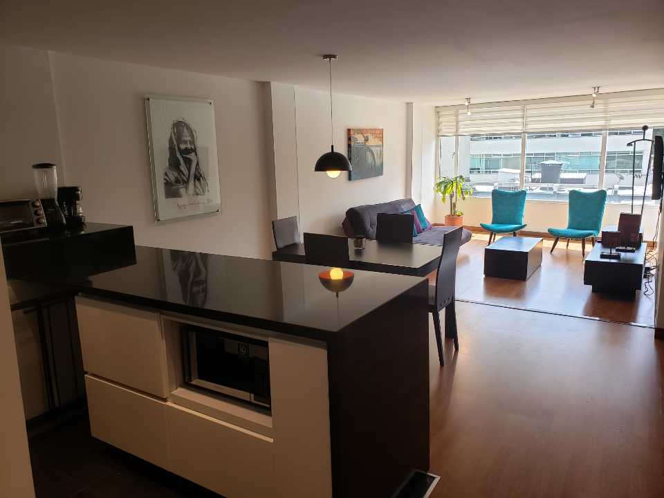 Apartamento en CHICO RESERVADO de una alcoba remodelado AMOBLADO exterior, piso 5, solo tiene un baño, sala comedor amplia, cocina abierta electrica, un garaje. EdIificio con vigilancia 24 7, 2 ascensores. A unos pasos del WORLD TRADE CENTER. Jaime Bravo