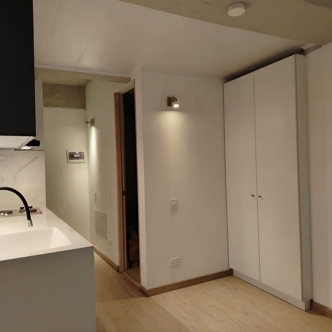 Este apartaestudio tipo loft monoambiente, ubicado en Bogotá, es una excelente opción para aquellos que buscan un espacio acogedor y funcional. Cuenta con una superficie construida de 25.0 metros cuadrados, lo que lo convierte en una opción ideal para una persona o una pareja. En su interior, cuenta con un armario empotrado que te ofrecen espacio suficiente para almacenar tus pertenencias de manera organizada y mantener el orden en tu hogar. Cuenta con ducha eléctrica, clóset, cocina integral tipo americano. También cuenta con doble ventana y piso laminado, lo que te garantiza una buena aislación térmica y acústica. En cuanto a los servicios, cuenta con conexión de electricidad, y extractor. En cuanto a sus características comunes, el edificio ofrece acceso para discapacitados y ascensor, lo que facilita la movilidad de las personas con dificultades físicas, salón comunal, terraza, BBQ, zona de yoga, 7 pisos; además, se encuentra cerca de centros comerciales, jardines y colegios, lo que lo convierte en una opción ideal para familias con niños. También está rodeado de restaurantes y tiendas de barrio, lo que te permite acceder a servicios y productos de manera cómoda y rápida. El edificio cuenta con circuito cerrado de televisión y vigilancia, para brindarte mayor seguridad y tranquilidad. También cuenta con portería/recepción, salón comunal y shut de basura. La ubicación del inmueble es estratégica, ya que se encuentra cercano a parques y transporte público cercano a la Autopista Norte, Cll 127, y Cll 129 lo que permite el desplazamiento por la ciudad de manera fácil y accesible. En definitiva, este apartaestudio es una excelente opción para vivir en una zona comercial y residencial, con todas las comodidades y servicios que necesitas. No pierdas la oportunidad de habitar este acogedor apartaestudio en Bogotá. En el canon está incluida la administración. ¡Contáctanos hoy mismo para conocer más detalles y agendar una visita!