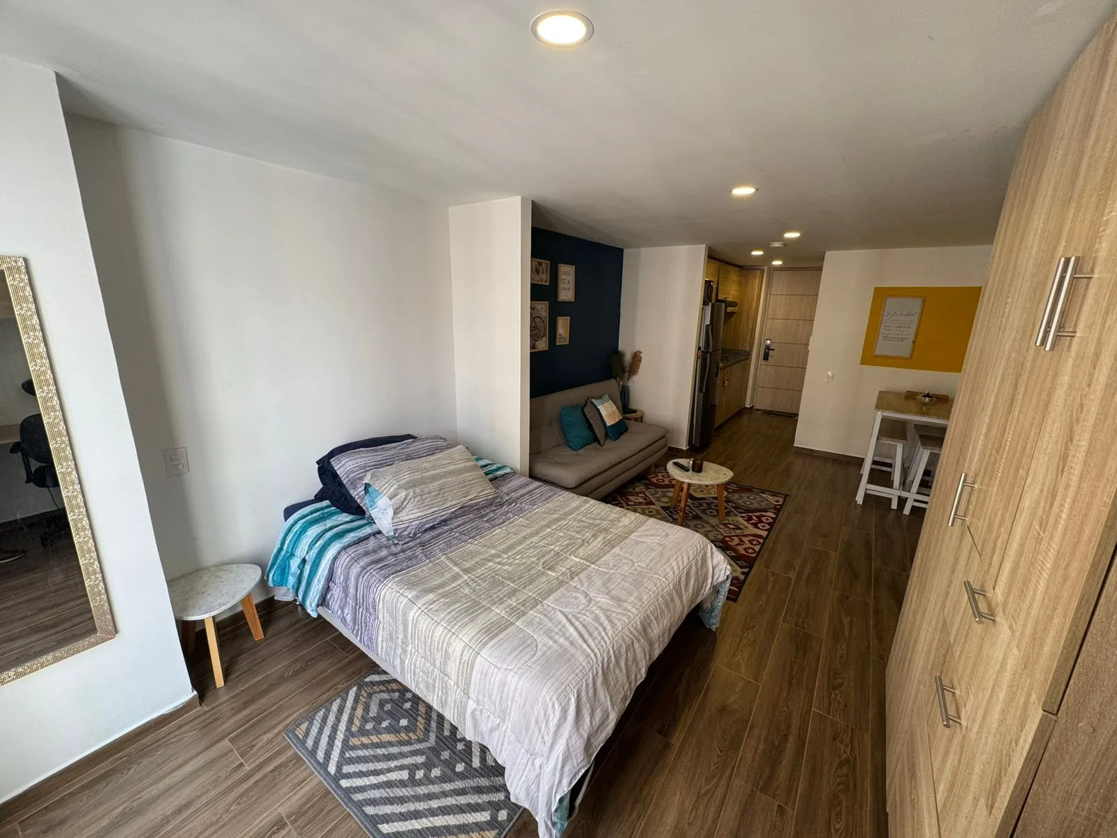 Este moderno y elegante apartaestudio AMOBLADO es la opción ideal para quienes buscan confort, ubicación estratégica y un buen estilo de vida. Situado en el exclusivo sector de Veracruz, en el corazón de Bogotá, se encuentra a pocos pasos de la estación de TransMilenio Las Aguas, el Museo del Oro y el vibrante centro histórico de la ciudad. Su acceso es fácil y rápido por la Carrera 4 y la Calle 19, rodeado de una amplia oferta cultural, comercial y de entretenimiento. El apartaestudio está diseñado para ofrecer la máxima comodidad, En un solo ambiente cuenta con closet y baño privado, además de espacio para la habitación principal. Los acabados de alta calidad incluyen pisos en cerámica tipo madera, creando un ambiente cálido y acogedor. La cocina integral abierta está equipada con estufa eléctrica, espacio de lavadora, brindando funcionalidad y comodidad para tu día a día. El edificio dispone de una amplia gama de amenidades para garantizar la mejor experiencia a sus residentes. Contáctanos ahora-