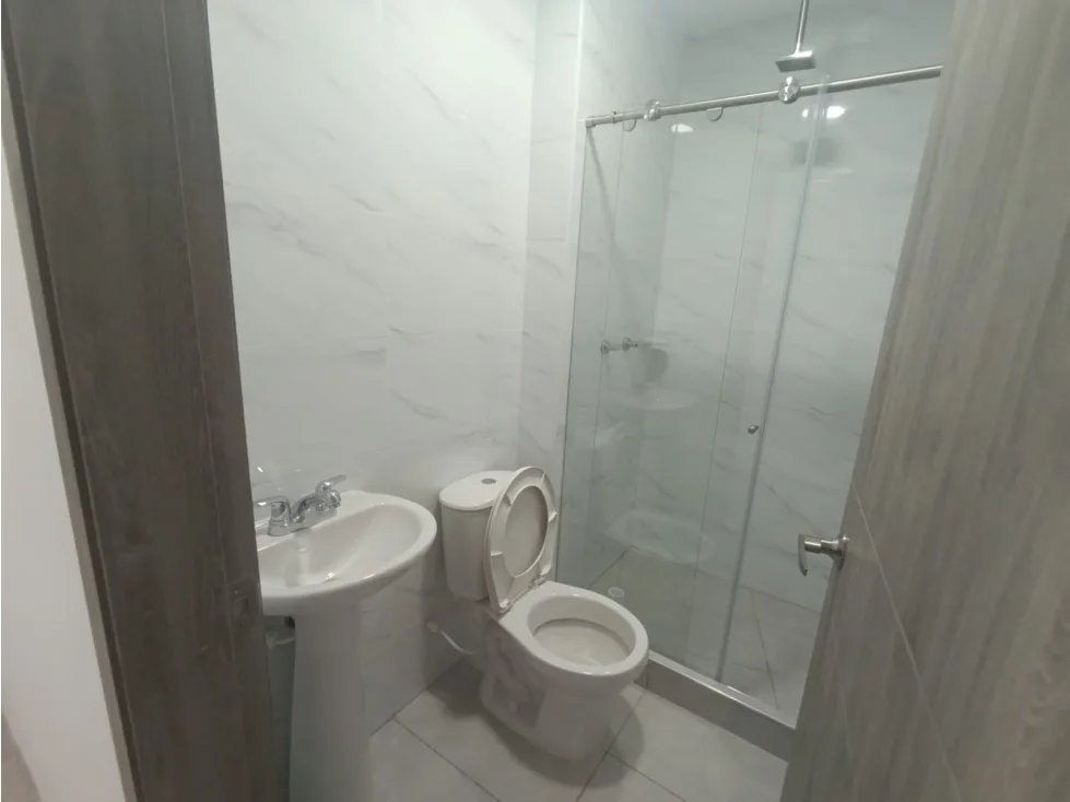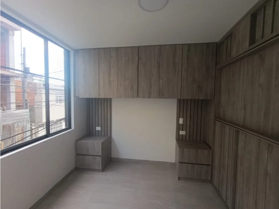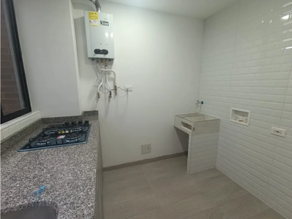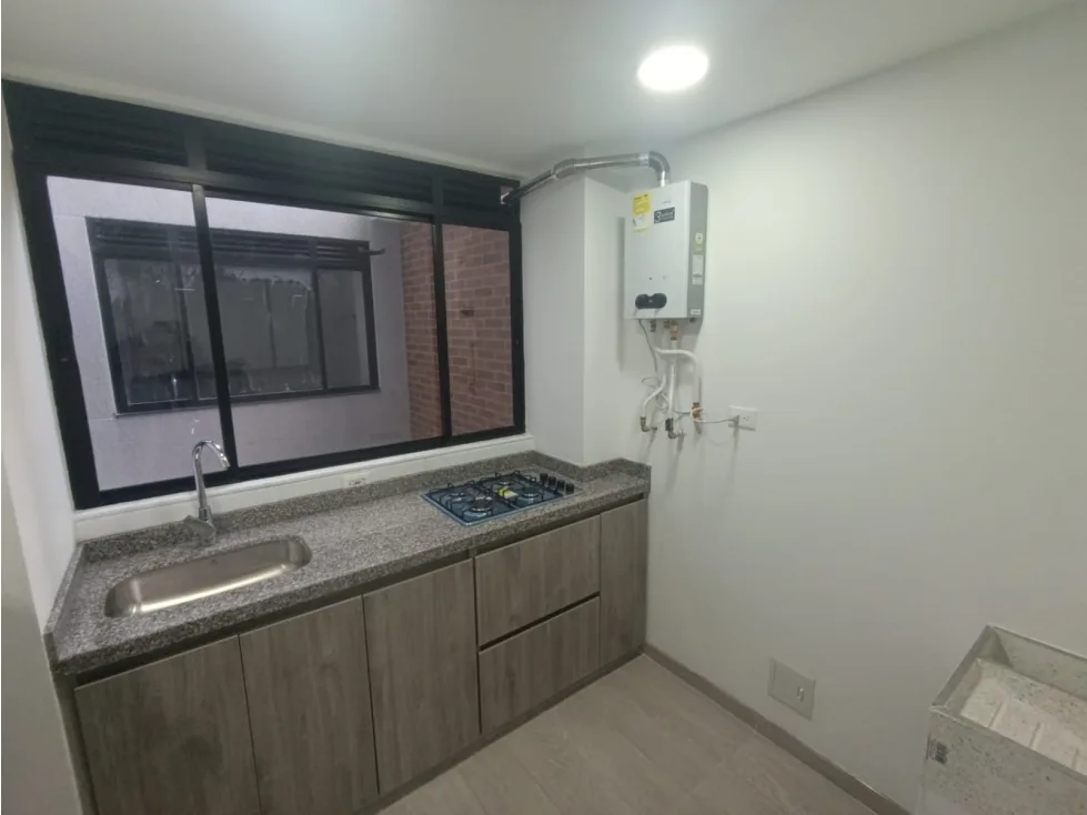 Cuenta con cocina integral y espacio de sala comedor, una habitacion con closet superior y mesas de noche, baño completo y zona de lavanderia, con vista al exterior del edificio. Pisos en ceramica y calentador.