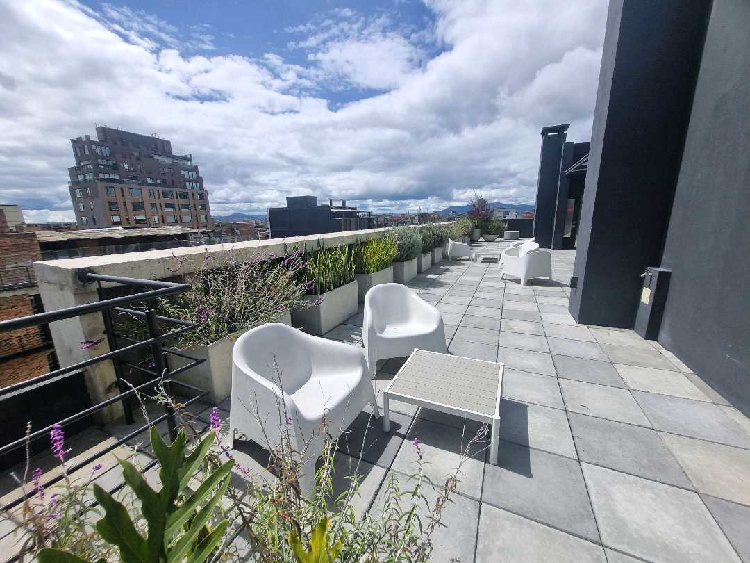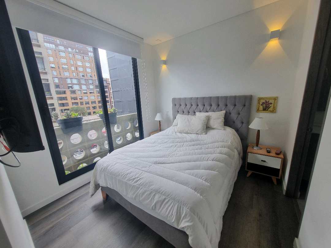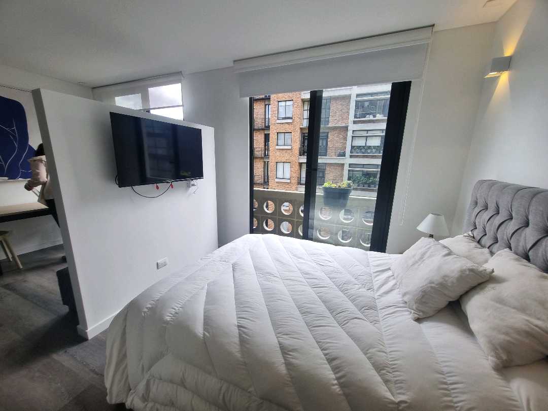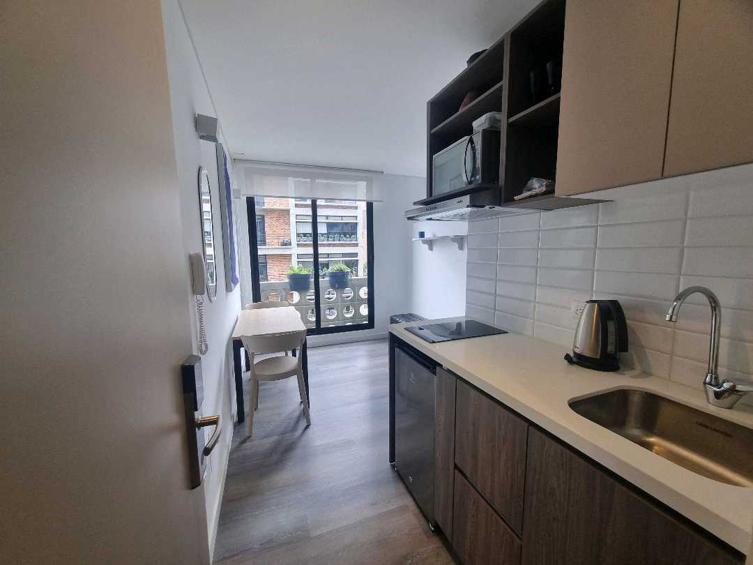Virrey aptoestudio AMOBLADO exterior piso 4 con sol de tarde. El apto wstudio tiene alcoba abierta, baño, vestier, sala comedor, cocina con nevera. El edificio tiene zona de lavandería, terraza con BBQ, salón de reuniones, gimnasio, vigilancia 27x4, ascensor, 20 parqueaderos de visitas.