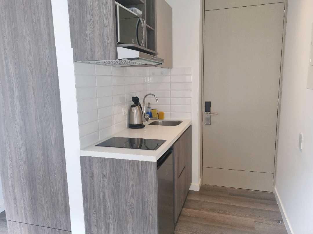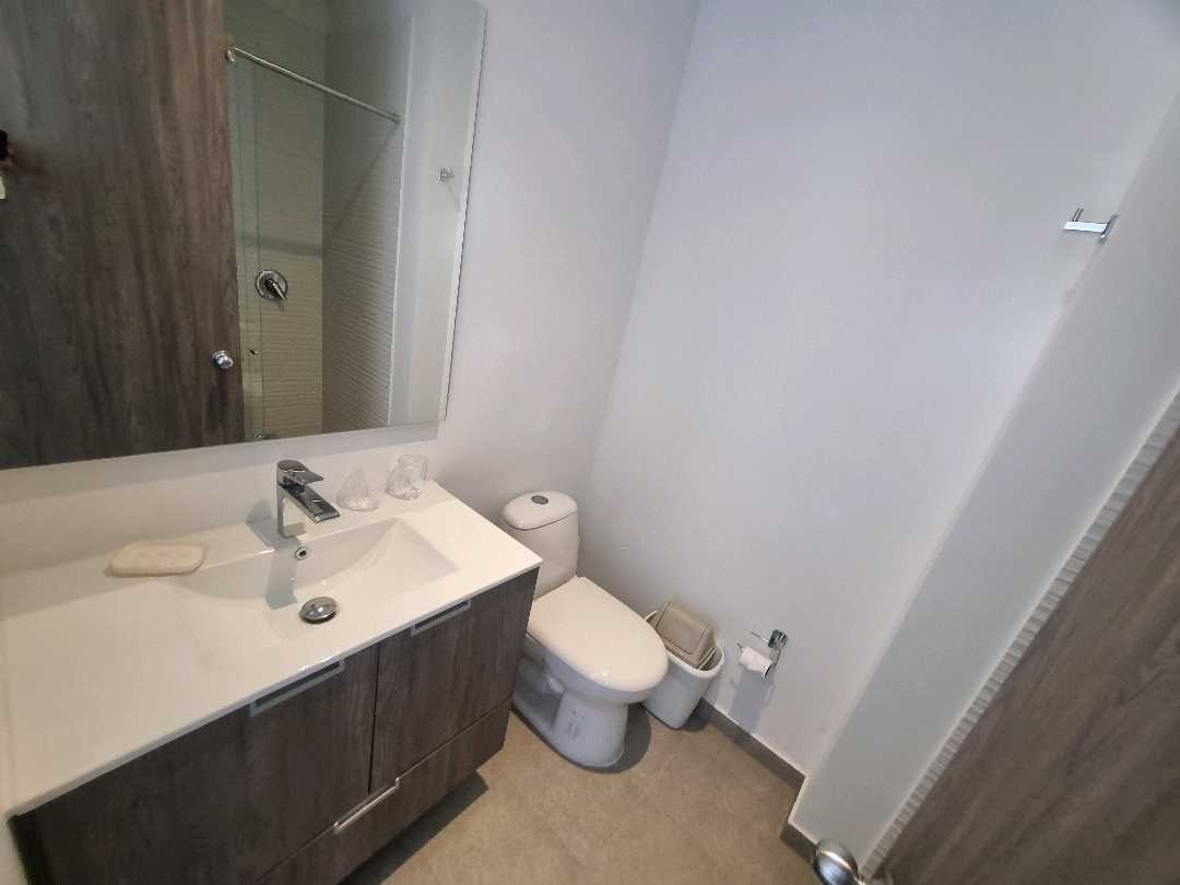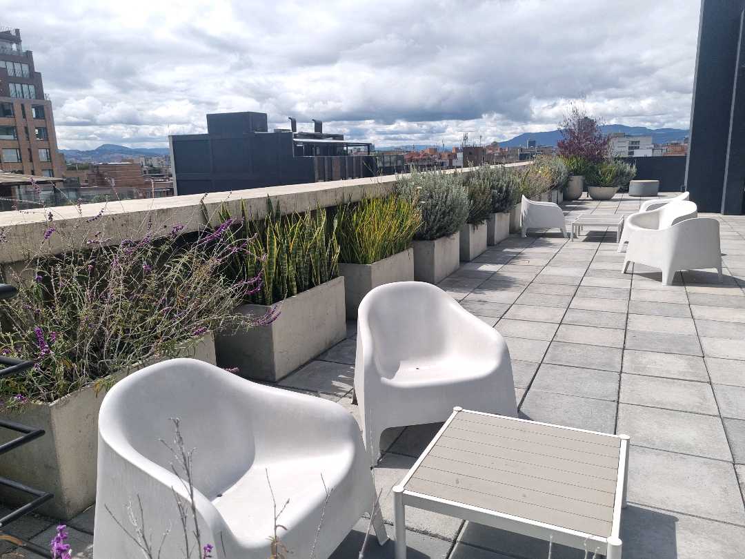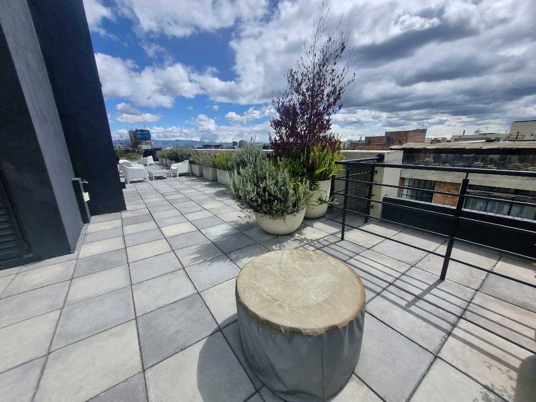 Virrey aptoestudio AMOBLADO exterior piso 4 con sol de tarde. El apto wstudio tiene alcoba abierta, baño, vestier, sala comedor, cocina con nevera. El edificio tiene zona de lavandería, terraza con BBQ, salón de reuniones, gimnasio, vigilancia 27x4, ascensor, 20 parqueaderos de visitas.