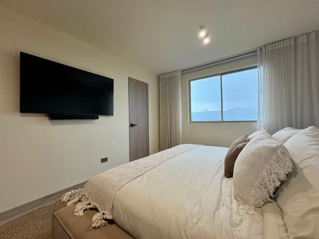 Arriendo apartaestudio amoblado. El Poblado, El Tesoro. Piso 13 con balcón y vista panorámica. - Área: 80M2. - Ubicación tranquila central y campestre. Iluminación y ventilación natural. . 1 Alcobas con baño y vestier. . 2 baños (Baño alcoba ppal. + Baño social) . Sala . Comedor . Cocina abierta con isla . Zona de ropas . Parqueadero - . Unidad cerrada. . Zonas verdes . Piscina, turco, cancha squash, , cancha de microfútbol, gimnasio, salas de cine y videojuegos, bancas con fogatas, entre otros. . Portería 24 horas, vigilancia - • Precio arriendo: $ 7.000.000= COP Incluye administración, servicios, y wifi. -