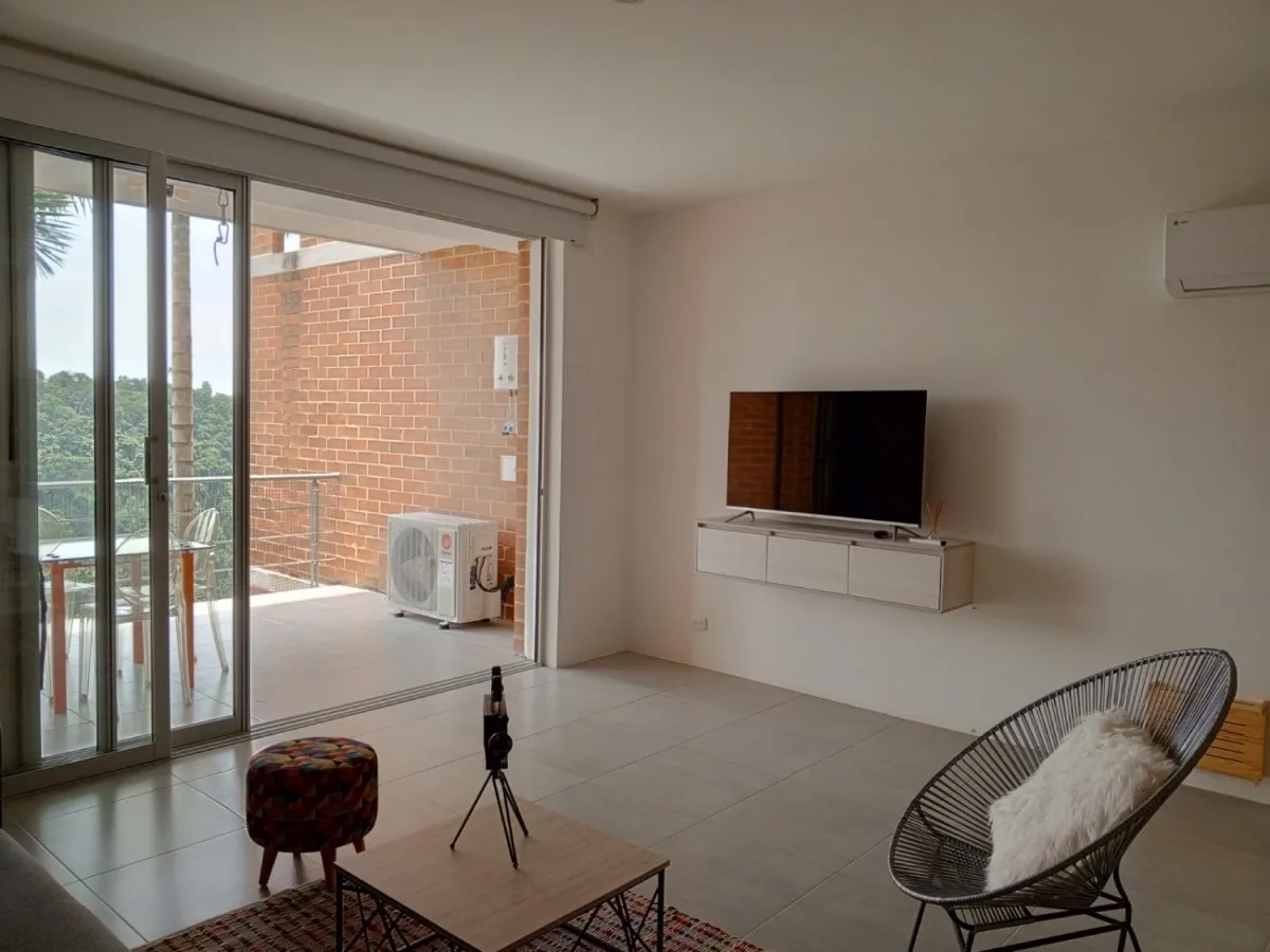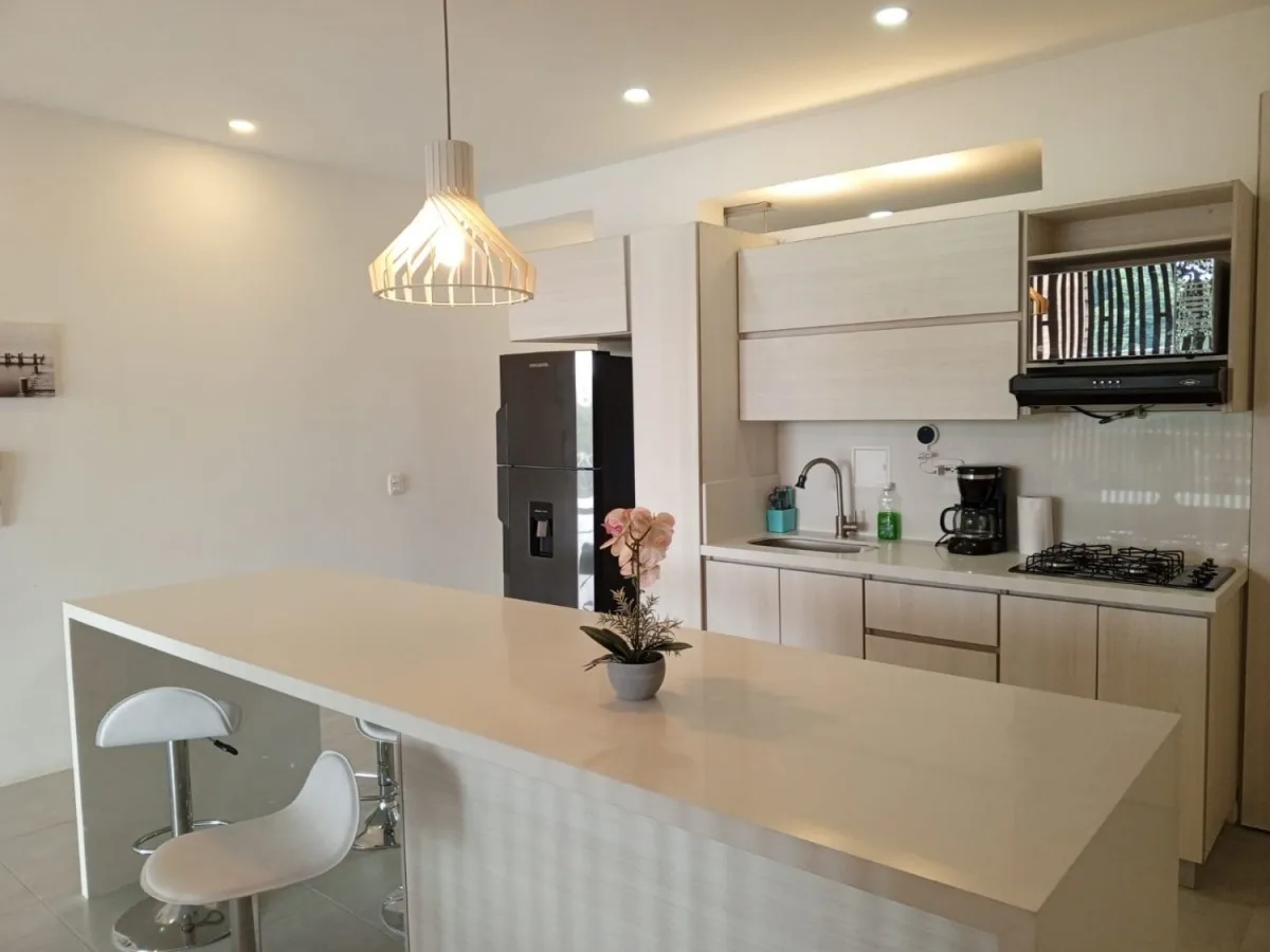 Apartamento moderno tipo loft totalmente amoblado y dotado, en conjunto situado frente al Club Campestre de Pereira Una 1 habitación con closet, un 1 baño social y de habitaciones, sala comedor, cocina integral, zona de ropas, balcón con espectacular vista al cañón del Consotá, aire acondicionado, un 1 parqueadero Conjunto con piscina, zona social, parqueaderos de visitantes y amplias zonas verdes. JOSE LUIS TAMAYO 188-3192