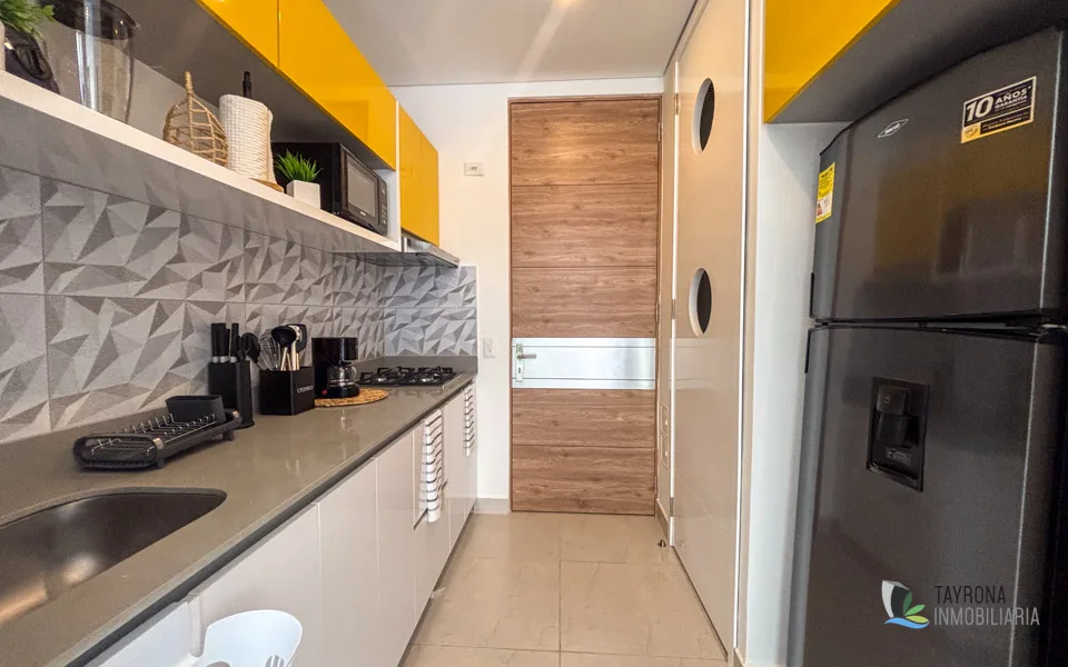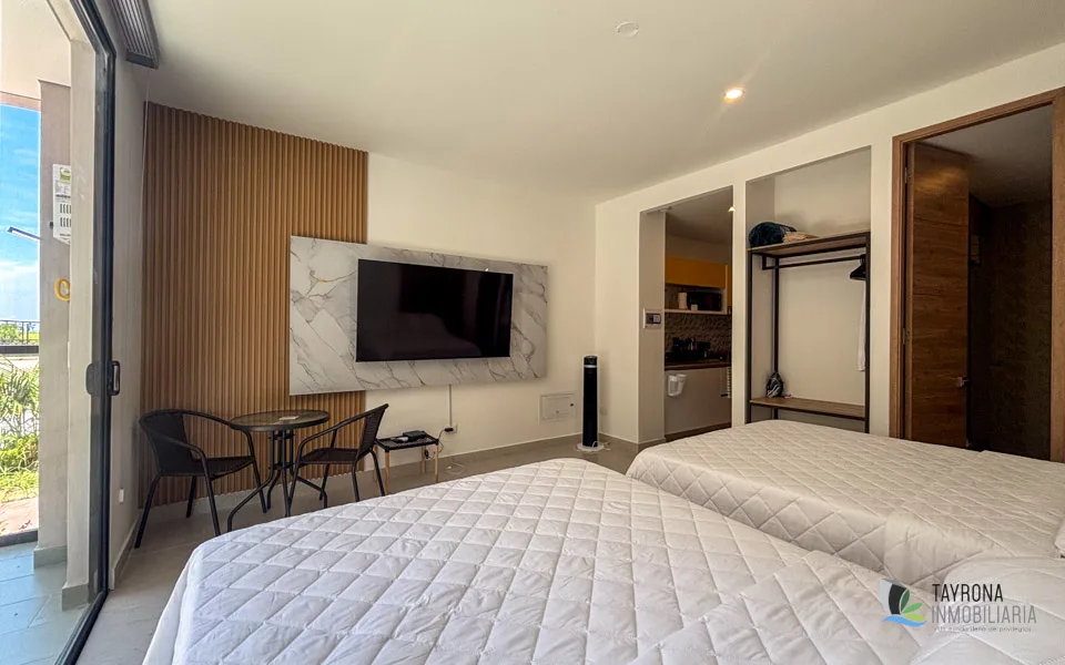 Se arrienda cómodo apartaestudio completamente amoblado en Pozos Colorados, Santa Marta. La propiedad cuenta con un ambiente amplio que incluye espacio de habitación con closet incorporado, baño completo con ducha, cocineta funcional y zona de labores independiente. El apartamento viene totalmente equipado con dos camas dobles ideales para huéspedes, televisor de gran formato, aire acondicionado marca Mabe, cortinas instaladas, lavadora y nevera completamente funcional. Ubicado en el sector de Pozos Colorados, zona en crecimiento con excelente conectividad y servicios cercanos. Ideal para profesionales, estudiantes, parejas o pequeñas familias que buscan comodidad inmediata sin necesidad de inversión en mobiliario. Perfecto también para alojamiento temporal, estadías cortas o largas. La propiedad ofrece todo lo necesario para mudarse solo con equipaje personal. Excelente opción para quienes valoran la practicidad de un espacio completamente equipado en una ubicación accesible de Santa Marta.