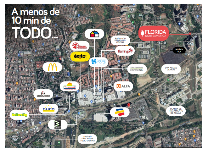 - Características Sector: Centros comerciales, Ciclovía, Clínicas / hospitales, Colegios, Gimnasios, Iglesias, Parques públicos, Sobre vía principal, Supermercados, Transporte público cercano, Universidades, Zona campestre, Zona comercial, Zona residencial