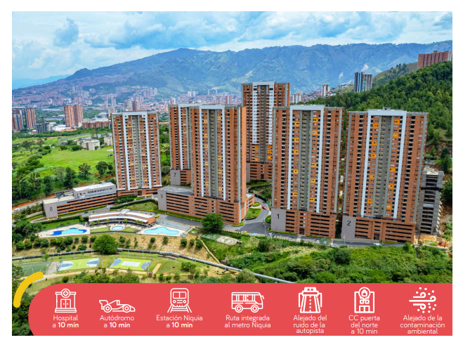 VENDO - ARRIENDO directo con dueño sin intermediarios NUEVO (administración incluida) Apartamento en La Unidad Florida Norteamérica en NIQUIA, Piso 2, Torre 3, Bello, Ant. Inmueble de 83 m2, TRES habitaciones, Altura al techo 3metros aprox, distribuidos estratégicamente. Ingreso con espacio de sala y comedor, integrados a una amplia cocina de 3metros en concepto abierto, espacio integrado al balcón con vista a una espectacular a reserva natural. Cuenta con zona de ropa, TRES habitaciones, Principal con baño privado, ducha con hidro masaje y bañera (Tina) hidromasaje, calentador de agua, baño social, parqueadero cubierto, capacidad (4 motos, 1 carro y dos motos). Urbanización vigilancia 24h, parqueadero visitantes, 15 zonas comunes (Pista de trote, Minigolf 2 Gimnasios, Cancha sintética y Polideportiva, Mall comercial con minimercado, Casita de muñecas, juegos infantiles, 3 piscinas climatizadas, turco, sauna pista tipo skate, triciclos y downhill, Zona de picnic). Excelente ubicación próxima a CC puerta del norte, Metro Niquia, acceso a transporte público con llegada directa a Urbanización. ¿Quieres conocerlo Hay mucho más por conocer con relación a esta propiedad, Contáctame si quieres conocerlo. WhatsApp 3122096654