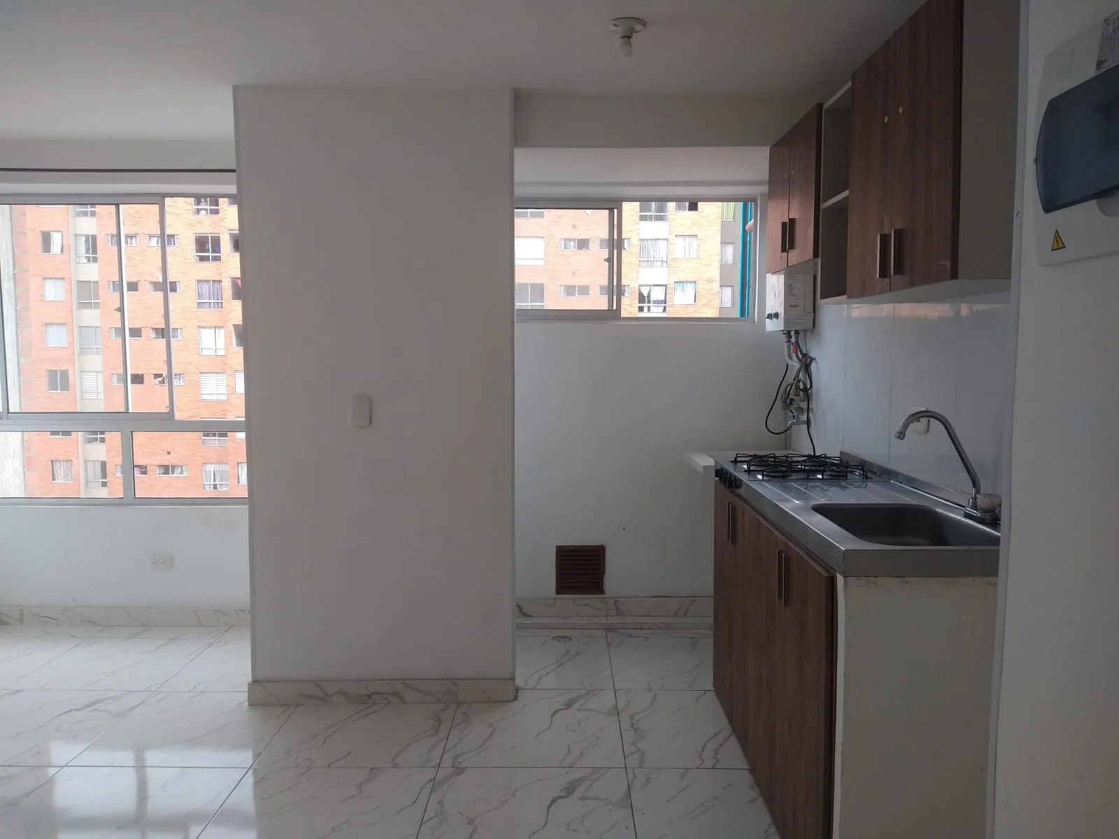 Apartamento ubicado en piso 15 , con magnífica luz natural, consta de 2 cómodas alcobas, 1 baño, sala comedor , cocina integral , el conjunto cuenta con salón social, lavandería comunal , gimnasio y parque infantil . Ubicado en la Avenida Ciudad de Cali frente a Homecenter, fácil acceso a transporte público . Agenda tú visita.
