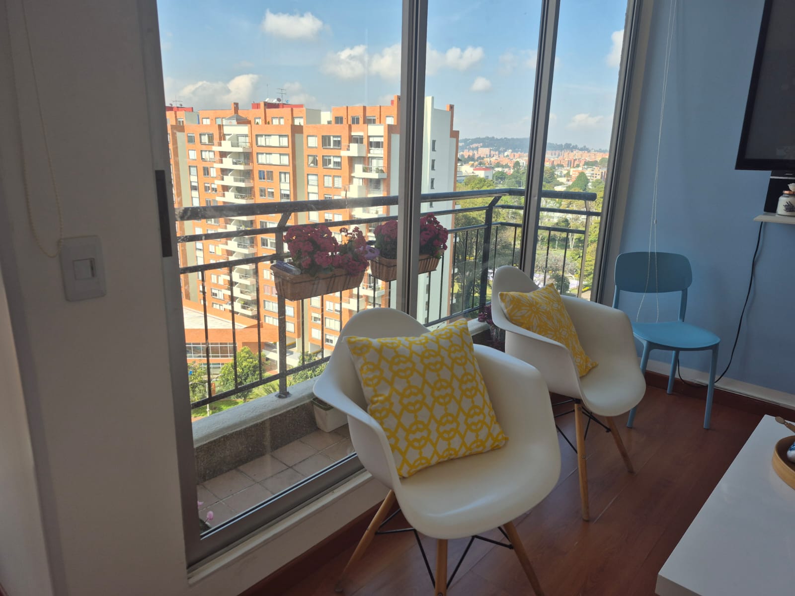 Arriendo cómodo e iluminado apto de 3 habitaciones, 2 baños, estudio, sala comedor con balcón, cocina abierta, zona de ropas independiente, EXTERIOR por los 3 lados, no comparte paredes con otro apto. El conjunto tiene gimnasio, 2 salones sociales, 2 parques infantiles, salón de ping pong, teatrino, 47 parqueaderos de visitantes, 2 terrazas con BBQ, portería 24 h, rampa de acceso y al exterior del conjunto hay cancha de basket, cancha de tenis, 2 parques de perros y 1 parque de niños. LAS FOTOS SON DE REFERENCIA, el apto es igual, pero queda en un piso 4. Cuenta con 1 garaje y NO tiene depósito.