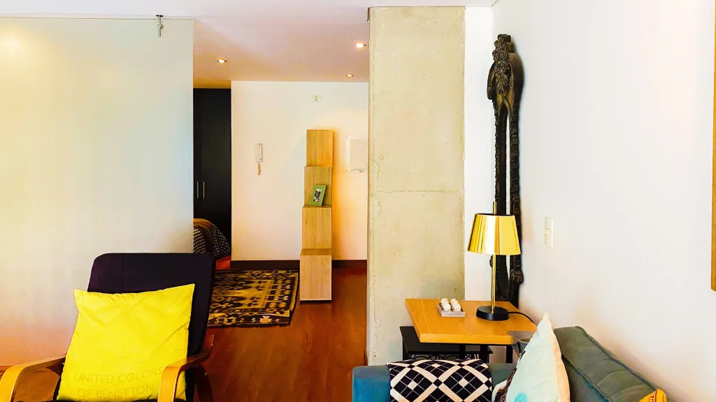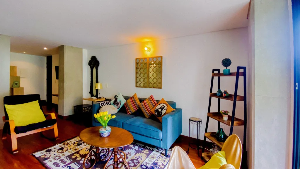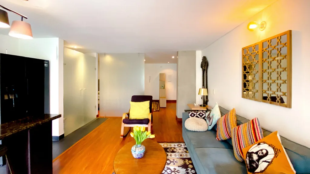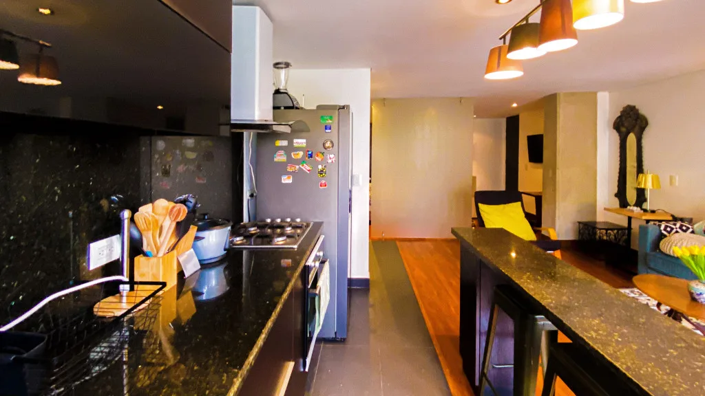 Hermoso Aparta-Estudio de 52 mt2, totalmente amoblado, con ambientes separados, cocina abierta tipo americano, terraza de 3.5 mt2 con vista hacia la montaña y un parqueadero.