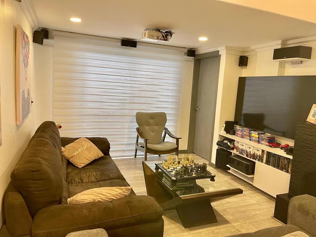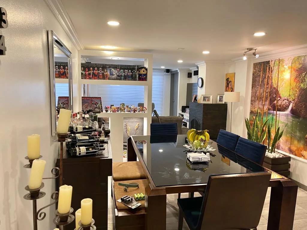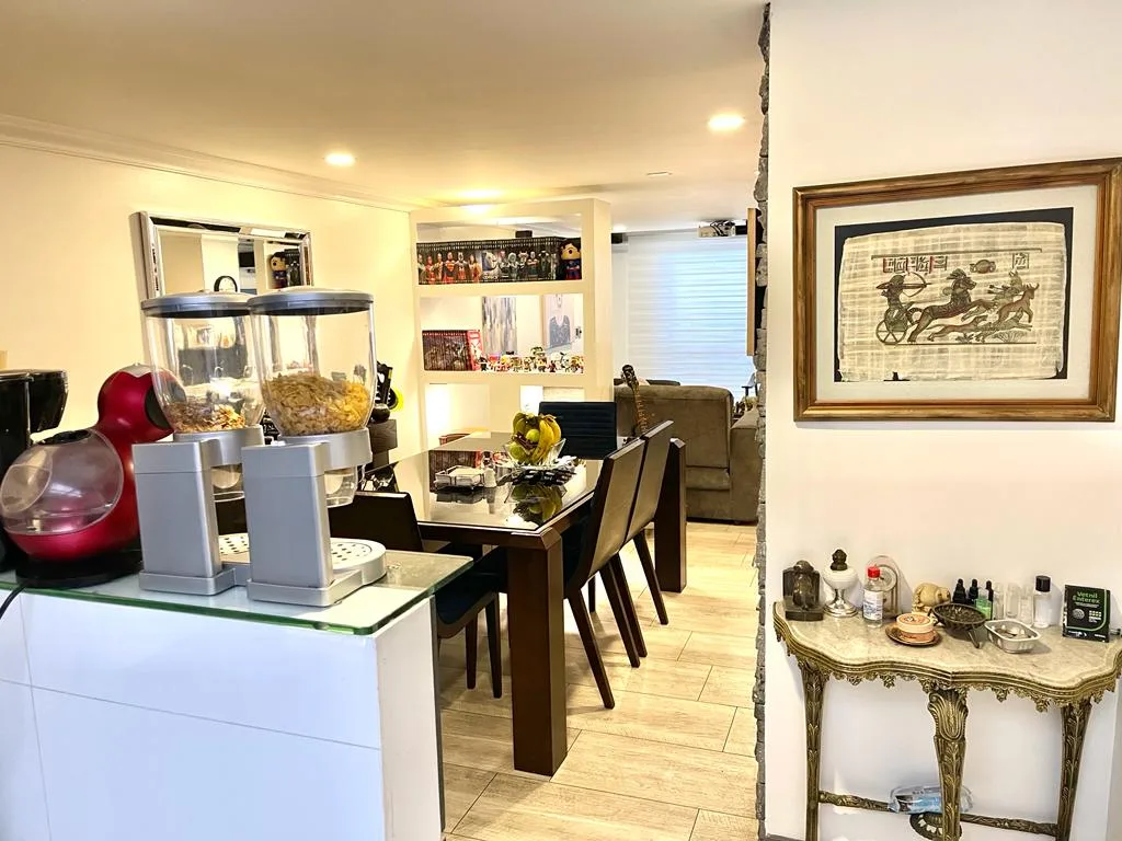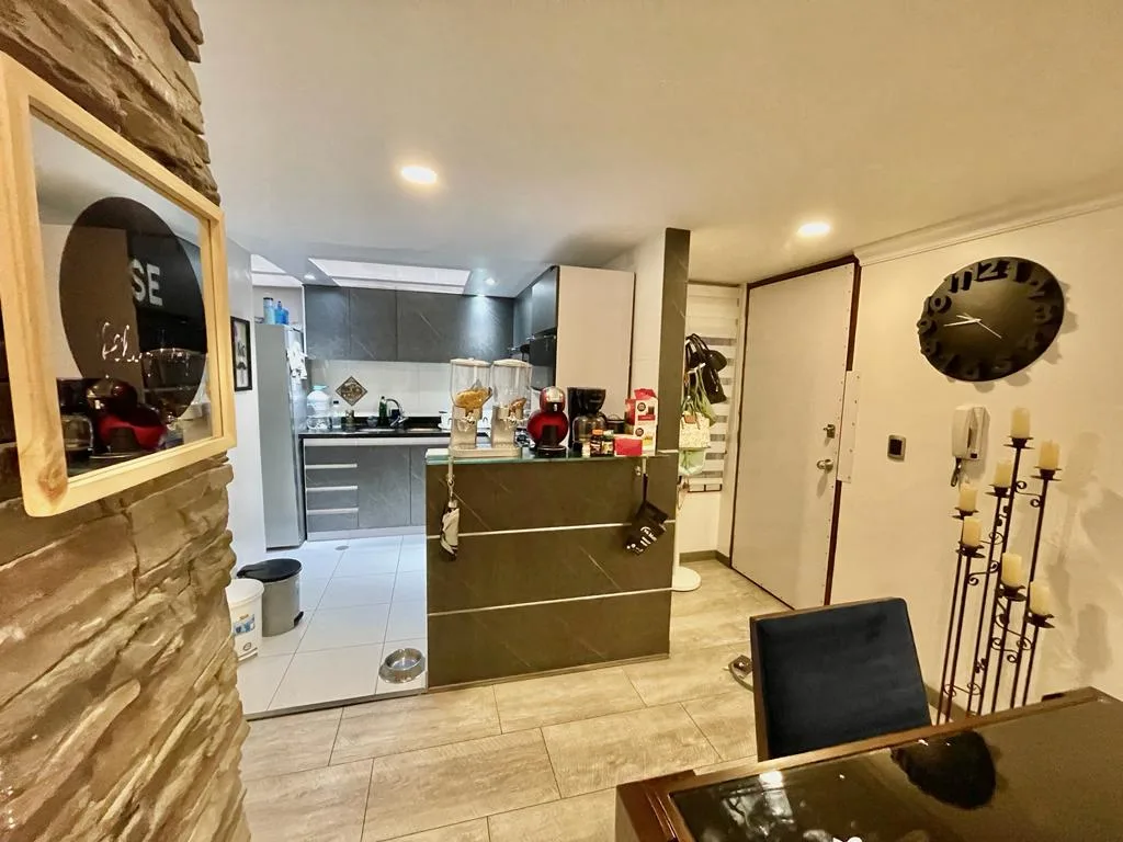 TIENE 3 HABITACIONES, PRINCIPAL CON BAÑO AMPLIO, BAÑO AUXILIAR, SALA COMEDOR CON CHIMENEA, TERRAZA PEQUEÑA INTERNA, COCINA SEMI ABIERTA, ZONA DE LAVANDERÍA, UN PARQUEADERO. VIGILANCIA 24 H.