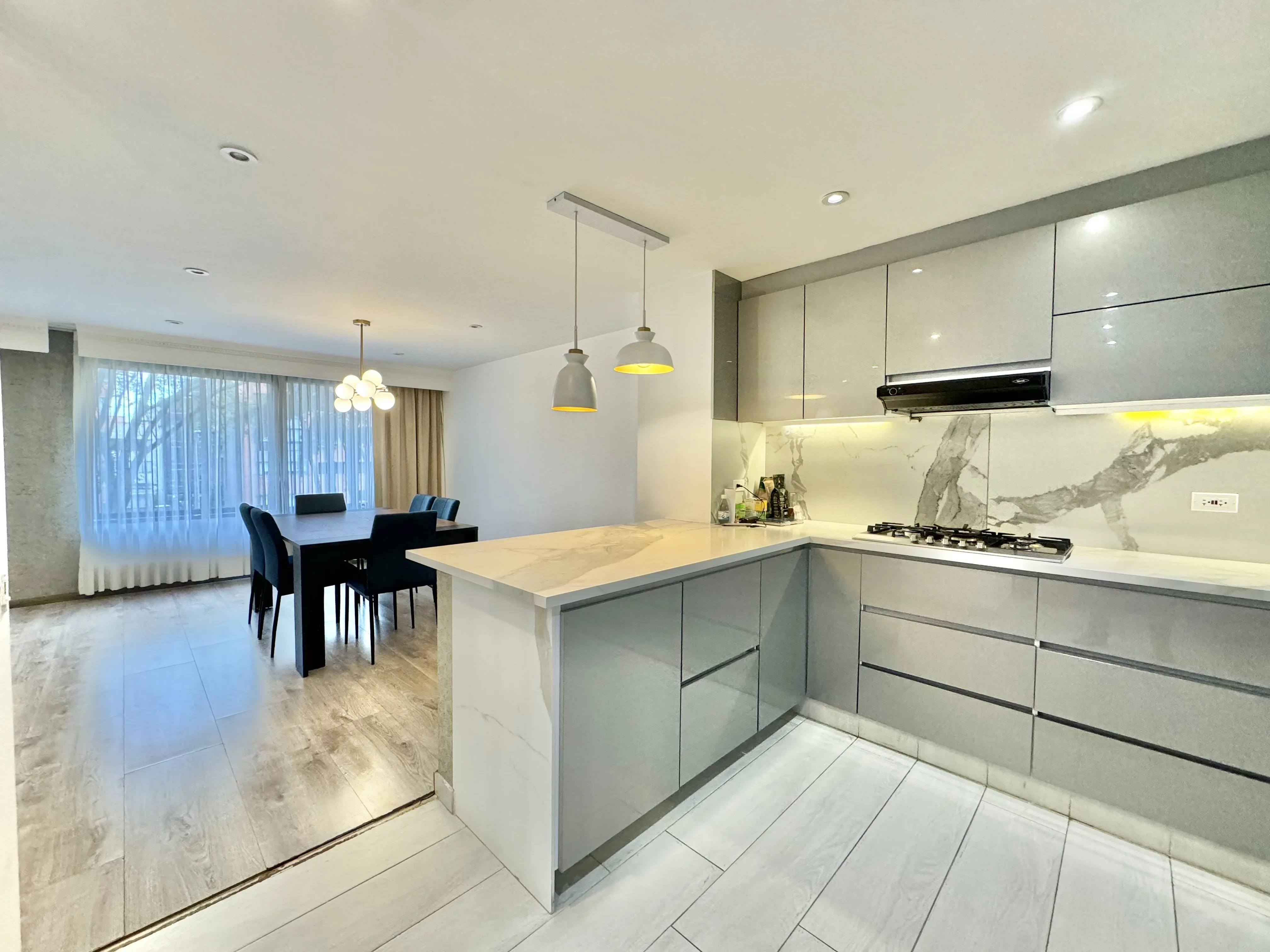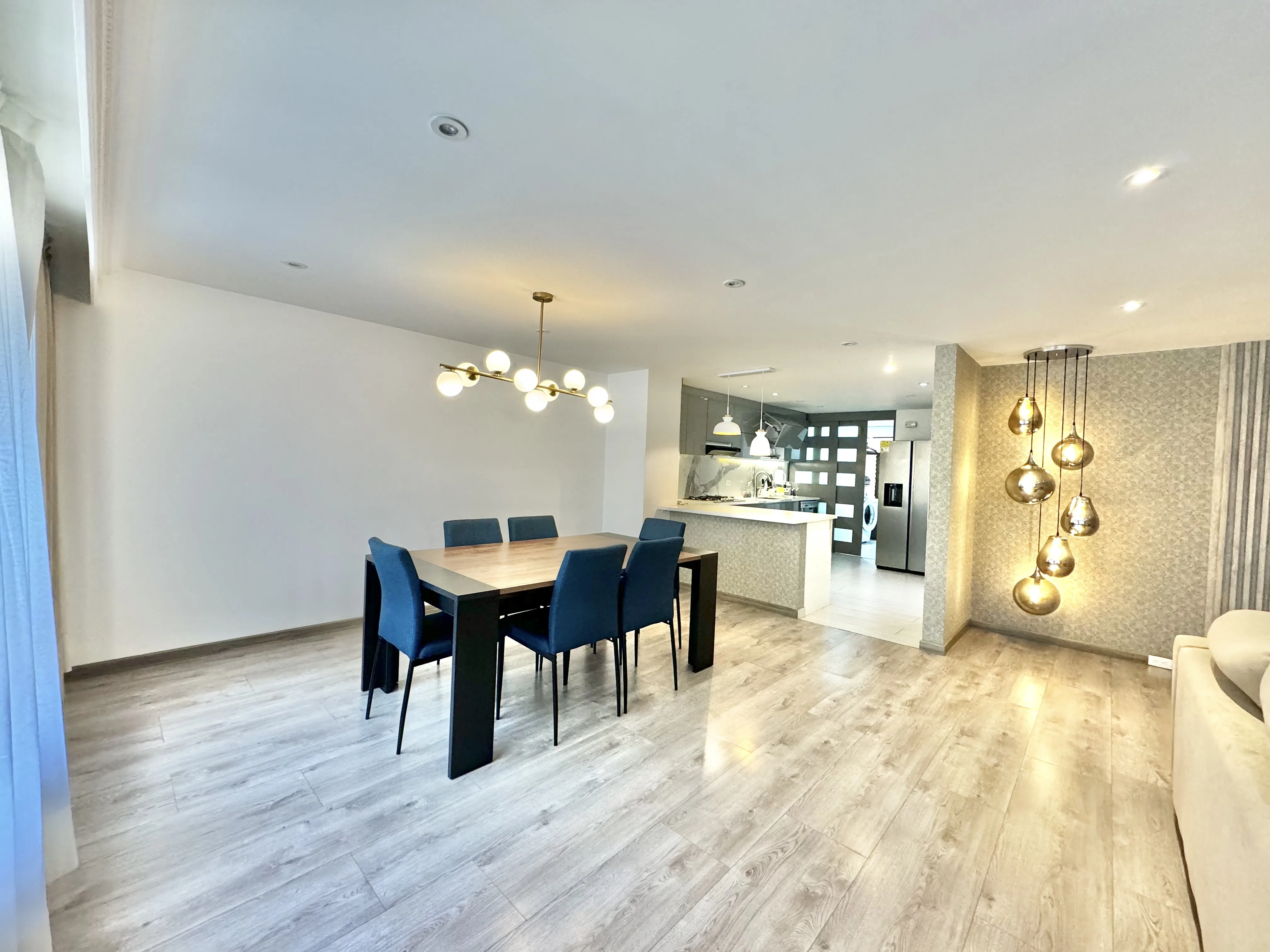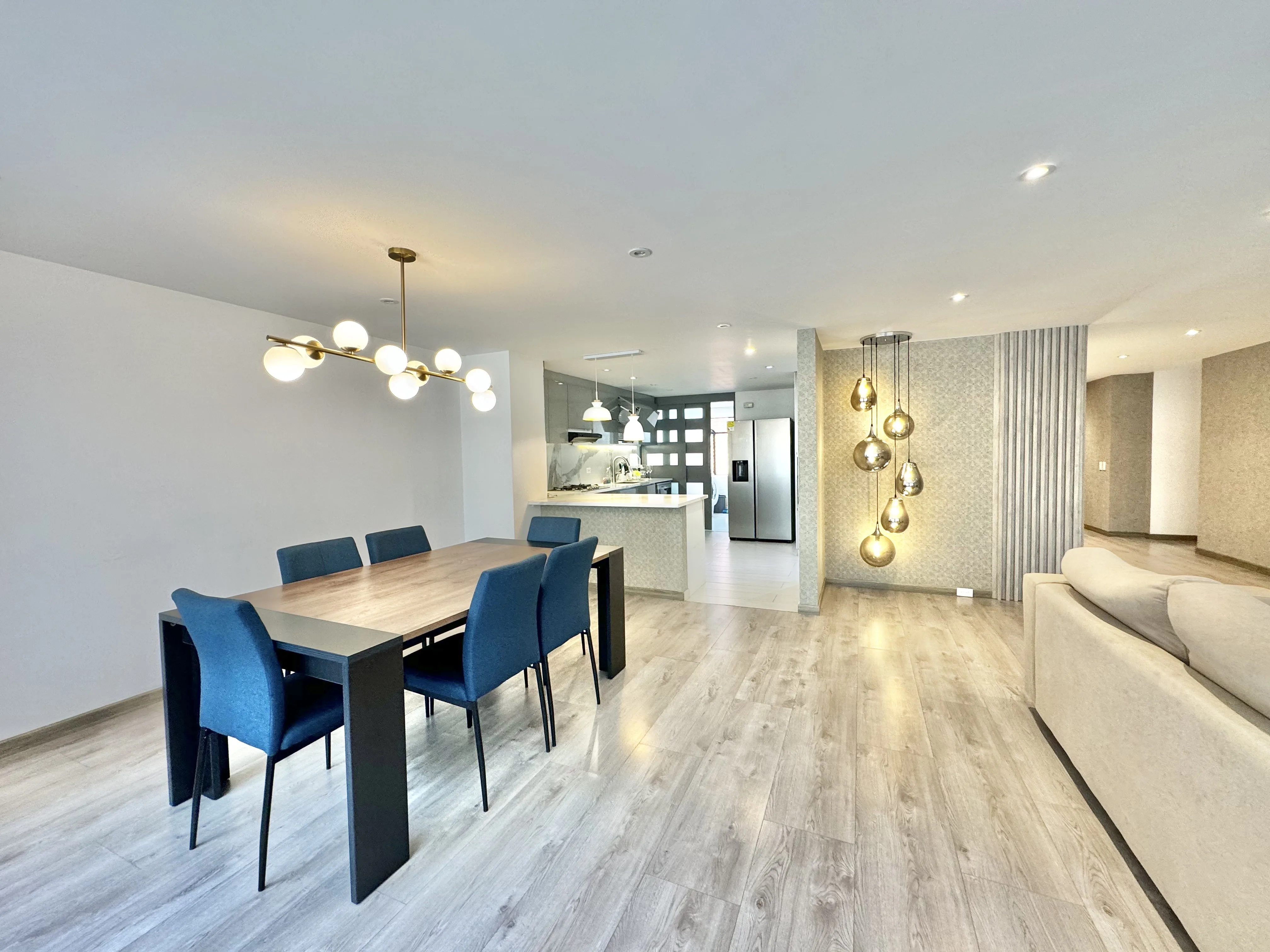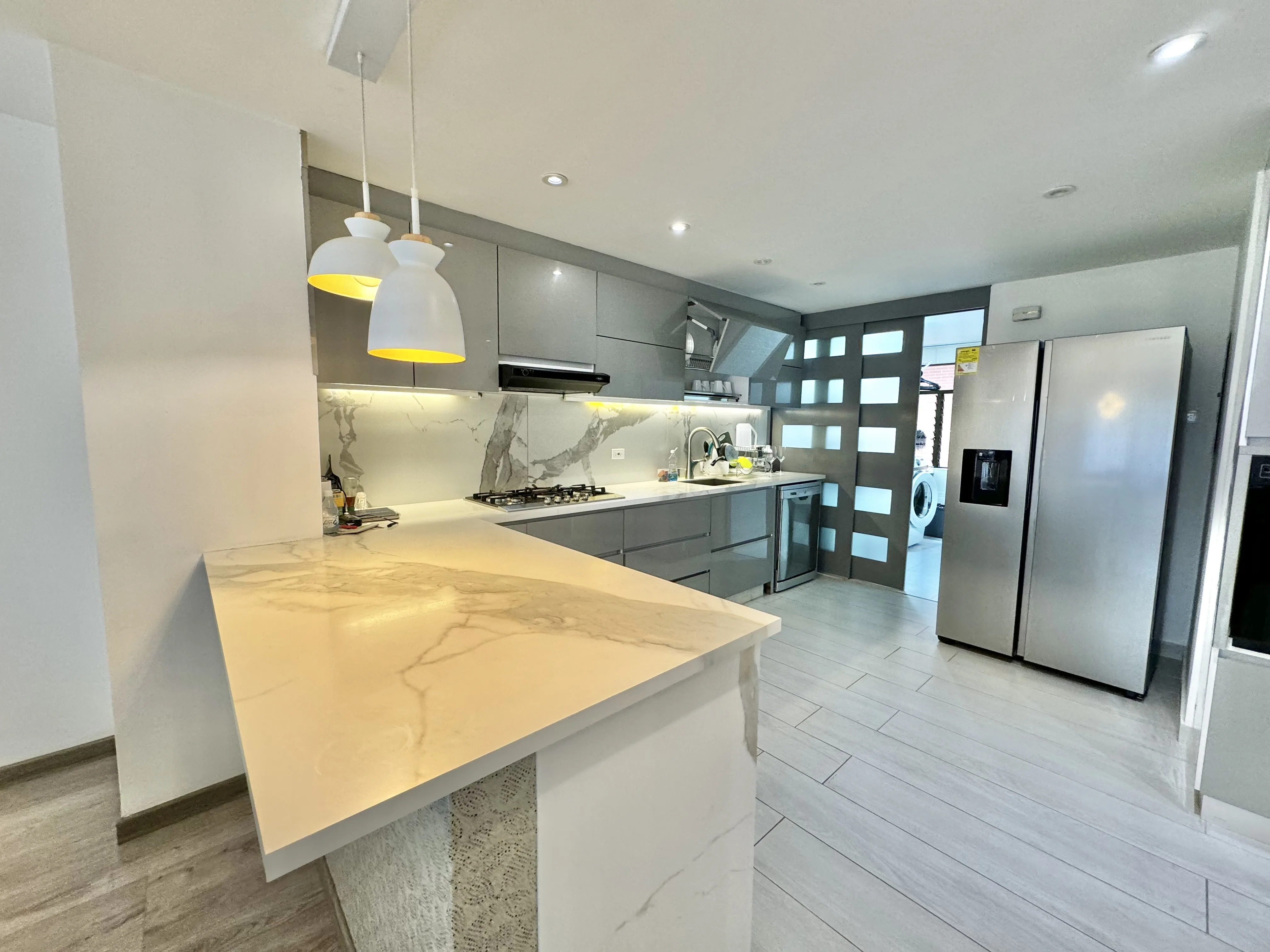 - Características Interiores: Barra estilo americano, Baño Auxiliar, Calentador, Chimenea, Citófono, Cocina Integral, Cocina tipo Americano, Comedor auxiliar, Estudio, Hall de Alcobas, Instalación de gas, Piso en Baldosa / Mármol