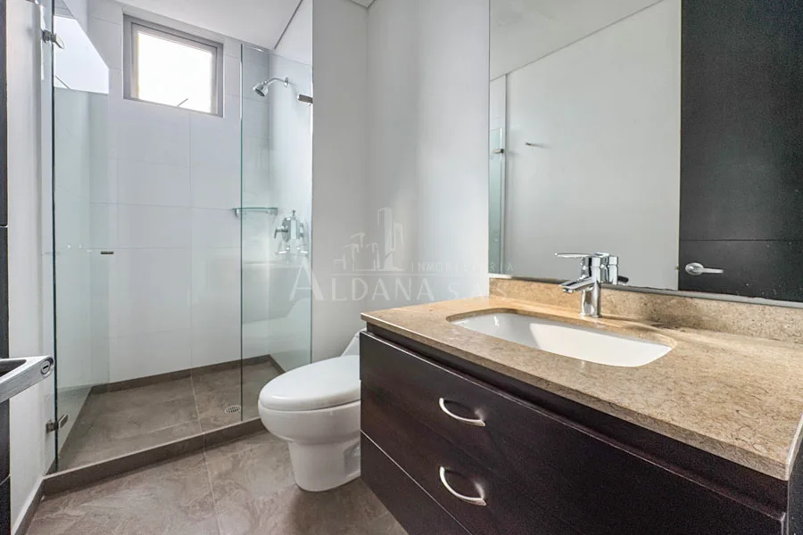 El edificio cuenta con terraza con BBQ, gimnasio dotado, mini golfito, parqueaderos de visitantes, y vigilancia 24h.