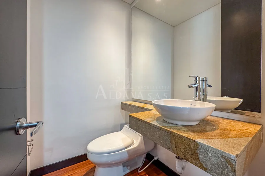 Arriendo moderno apartamento en Chico Norte, ubicado en piso alto, super iluminado. Cuenta con 90mts, 2 alcobas cada una con baño privado y con ventilación natural, baño social, sala y comedor con acceso a amplio balcón, cocina abierta con barra tipo americana, zona de lavandería independiente, 2 parqueaderos y depósito.