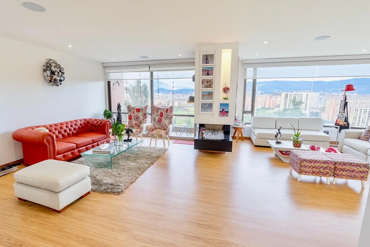 Hermoso Apartamento exterior , en el mas exclusivo Condominio sobre los cerros de suba con una vista única hacia toda la ciudad y hacia reserva forestal .Todos los cuartos tiene closet y baño privado , el apartamento posee dos Balcones, Chimenea a Gas, Cortinas automatizada, Estar de alcobas, Cuarto de servicio con baño; El condominio posee un Club House con Cancha de Squash, Zonas Húmedas, Gimnasio, Zona BBQ, Parque para Niños, Salón Social, entre una espectacular reserva natural de los Cerros de Suba. Sector muy residencia y tranquilo para vivir sin salir de la ciudad, cerca a centros comerciales, colegios y vías principales de acceso . Se entrega con conexión para vehículo eléctrico .