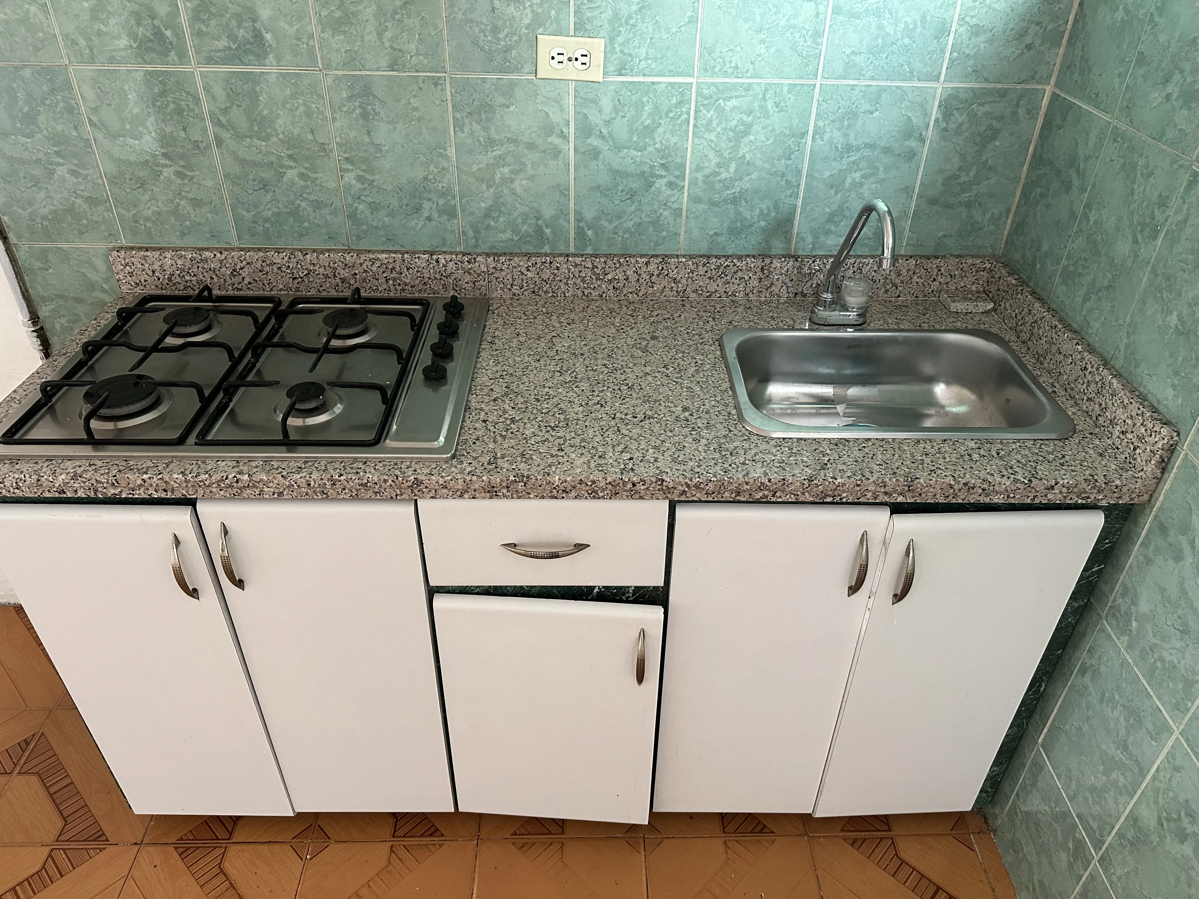 Ducha eléctrica y cocina a gas