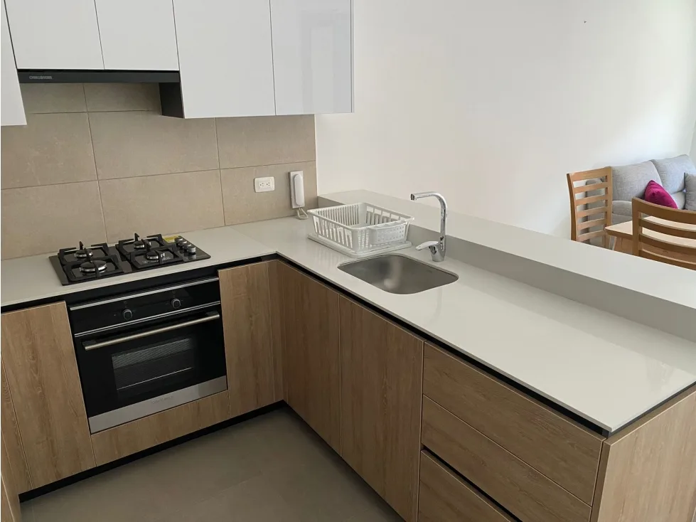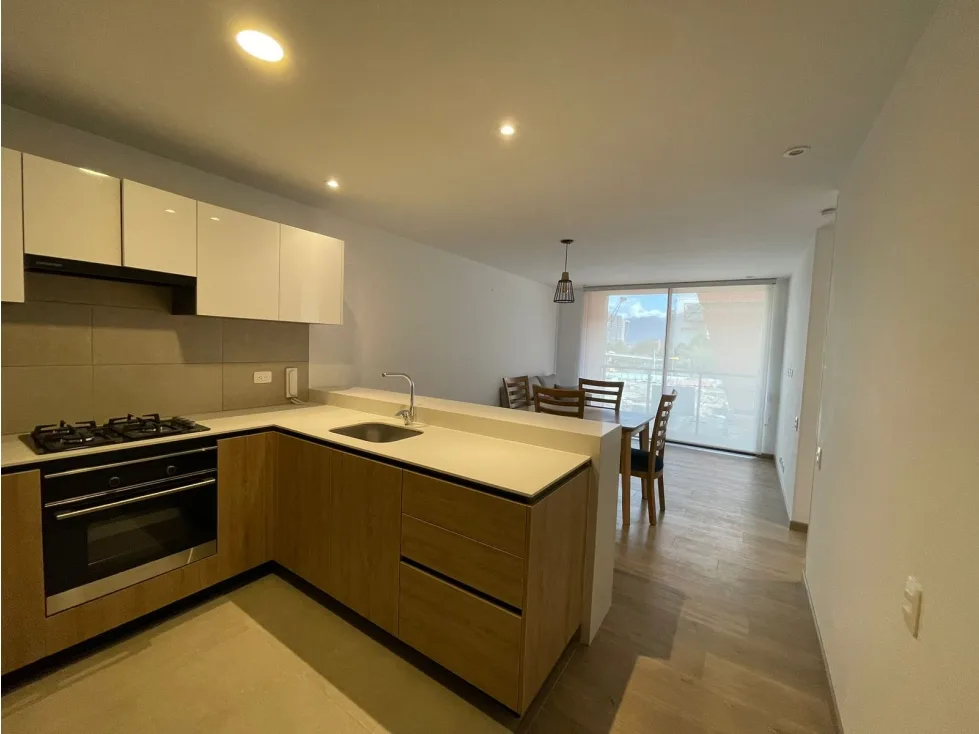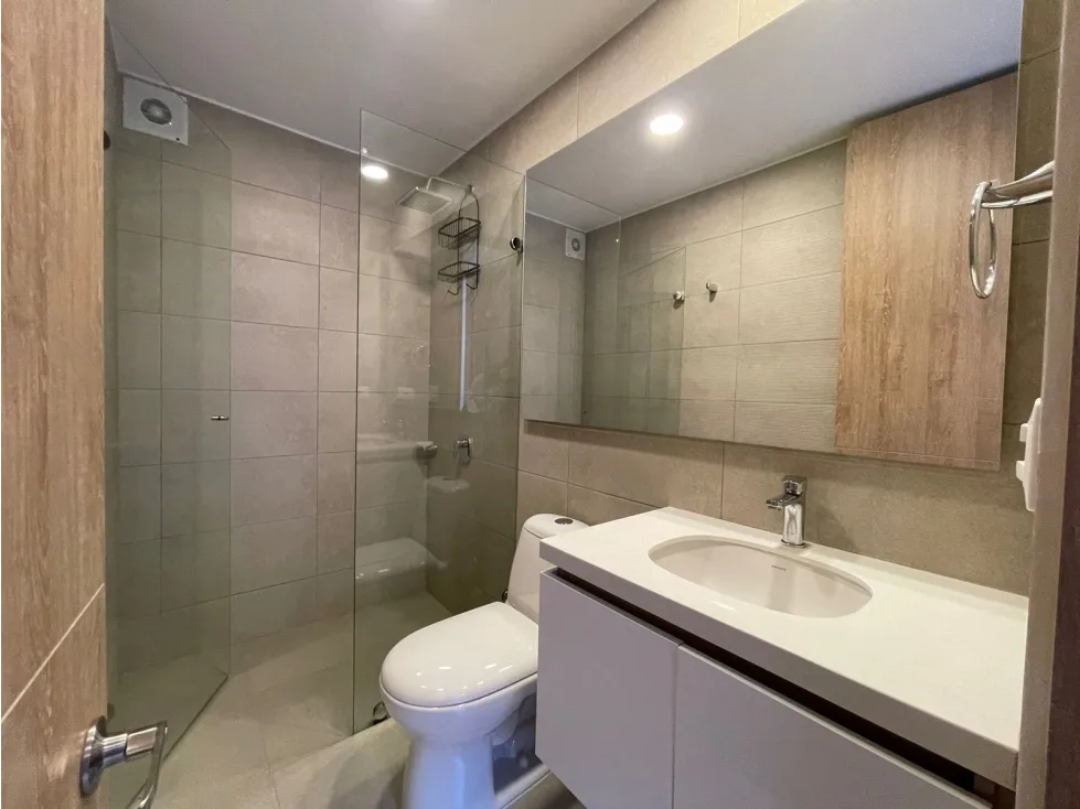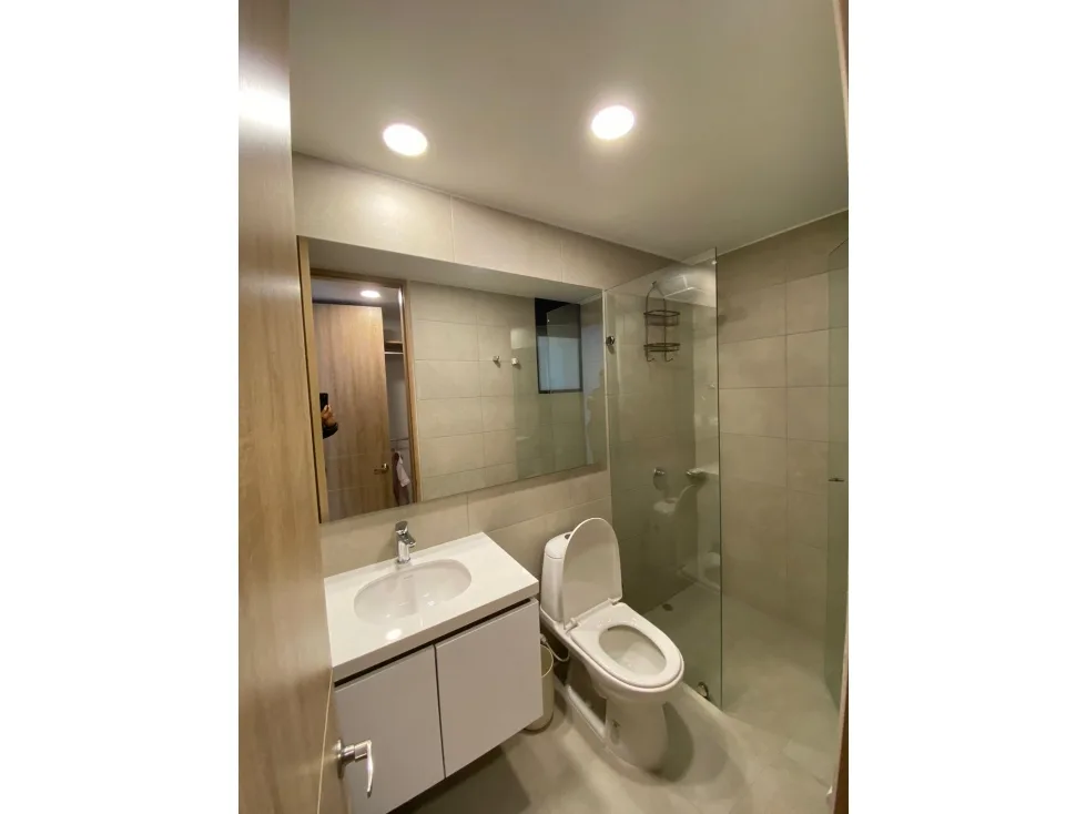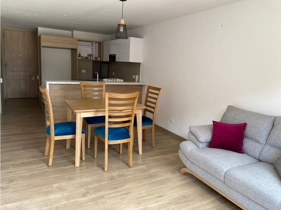 Apartamento de dos habitaciones, la principal con Vestier y baño privado, sala-comedor con balcon, cocina abierta, zona de lavandería independiente, un parqueadero, un deposito.