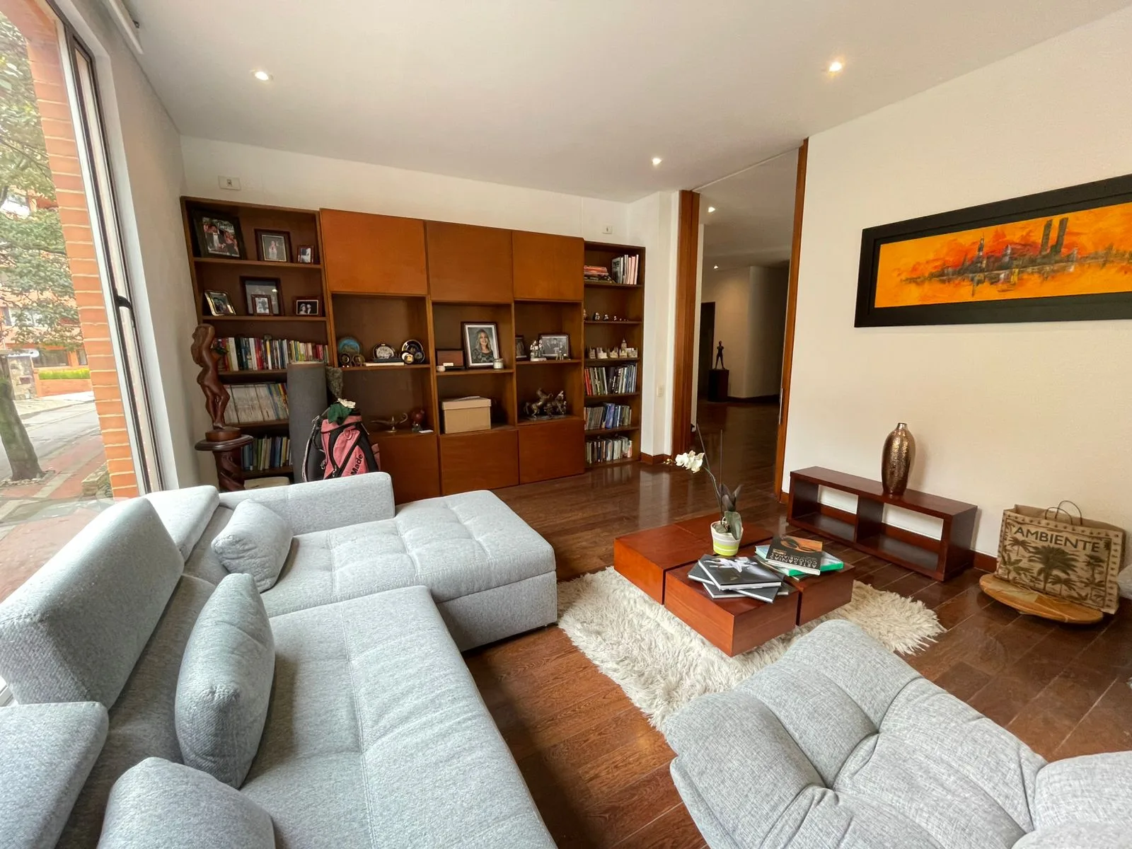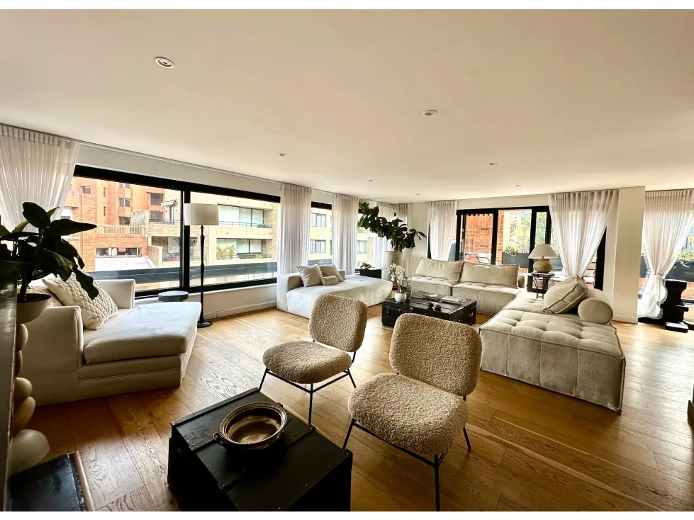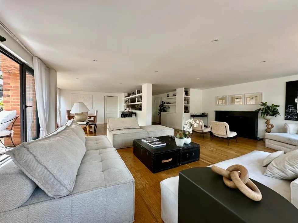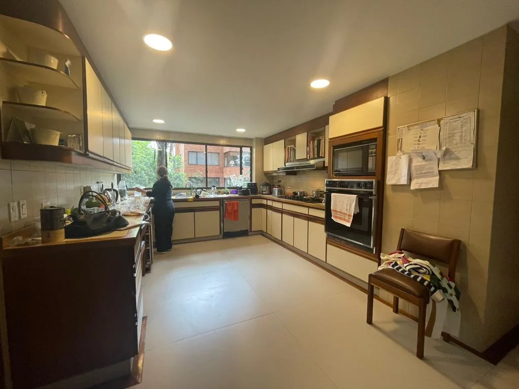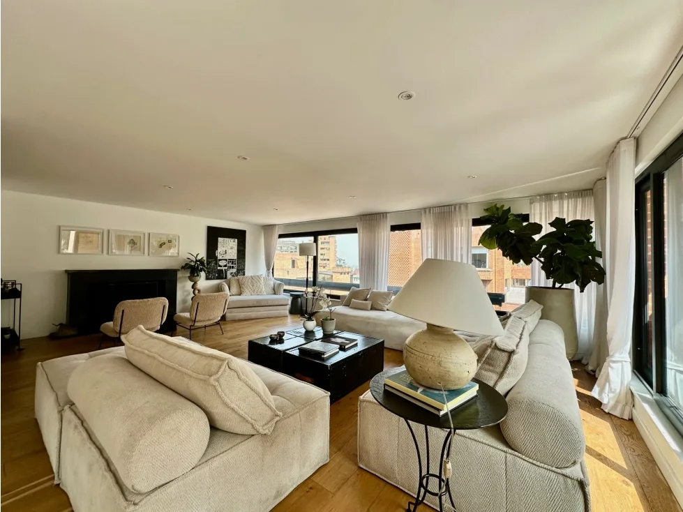 Ofrezco grandioso apartamento en Rosales bajo con excelentes espacios, en piso alto y con impactante vista 360 grados. En la zona social goza con una espectacular vista hacia el occidente, Bogotá y sus atardeceres y en la zona social ve una arboleda privada. El apartamento cuenta con un área privada de 430 m2, 4 cuartos cada uno con baño privado, estar de alcobas con salida a un balcón grande, gran zona social con gran recibidor, baño social, sala independiente con chimenea grande, estudio independiente con salida a un balcón, comedor independiente con salida a otro balcón, cocina independiente de muy buen tamaño con despensa independiente, zona de lavandería independiente y cuarto y baño de servicio. Tiene 3 garajes independientes y 1 deposito. El edificio cuenta con 12 parqueaderos de visitantes, excelente vigilancia (dos porterías) y salón social con terraza para eventos.