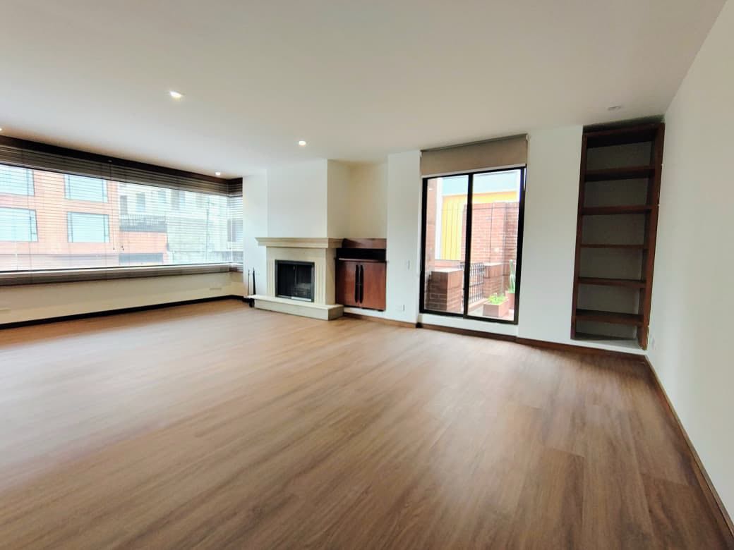 Arriendo lindo y cómodo apartamento con terraza de 20m, sala comedor en un solo ambiente, chimenea, alcoba principal con vestier y baño, baño para la segunda alcoba, baño social y baño de servicio, cocina remodelada! 2 parqueaderos y depósito. Edificio con gimnasio, sauna, vigilancia 24 horas, parqueaderos de visitantes, excelente zona cerca a parques, restaurantes, etc.