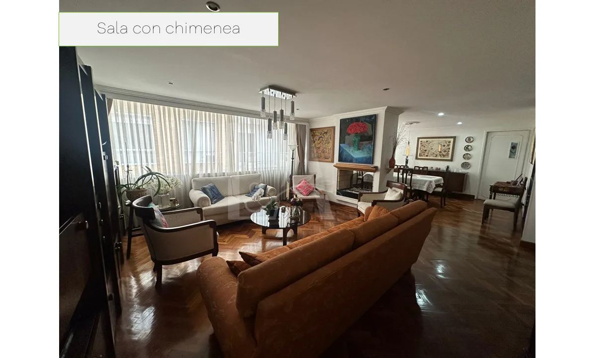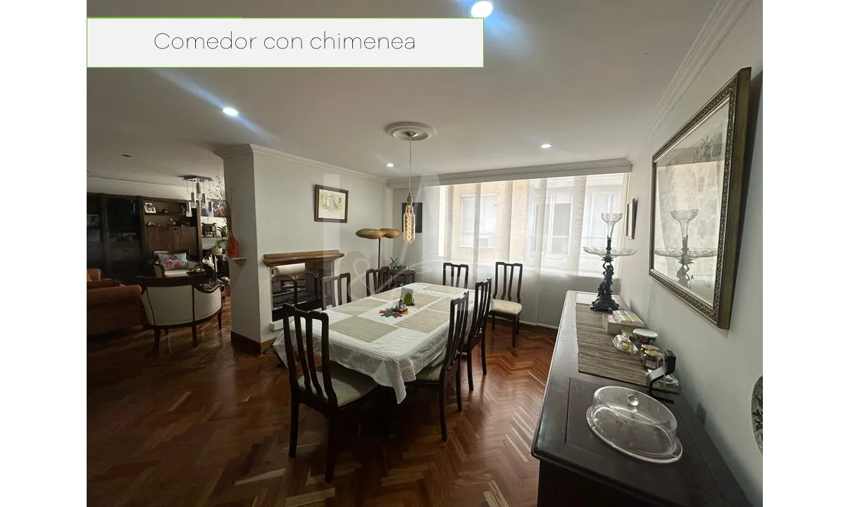 Apartamento en arriendo amoblado de 160 M2, cuenta con cerradura de seguridad al ingreso, mueble de linos, baño social, cocina con electrodomésticos, zona de ropas con ventilación natural, comedor con chimenea, sala con chimenea, hall de habitaciones, segunda habitación con baño, habitación principal con baño y Walking Closet, tercer habitación o estudio, cuenta con dos parqueaderos en linea y deposito.