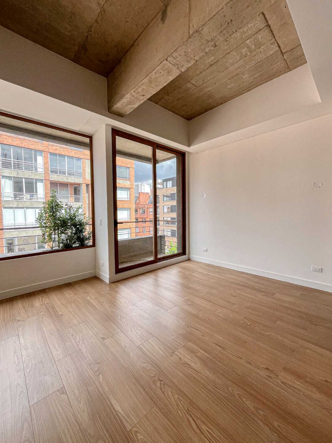 El apartamento cuenta con una área privada de 109.46 m², ubicado en un sexto piso exterior, lo que garantiza excelente iluminación natural y vistas despejadas. Su acceso es directo mediante ascensor privado, complementado con puerta de seguridad, aportando privacidad y tranquilidad desde el primer ingreso. La distribución interior incluye dos habitaciones, un estudio independiente y tres baños, logrando un equilibrio perfecto entre espacios sociales y privados.
