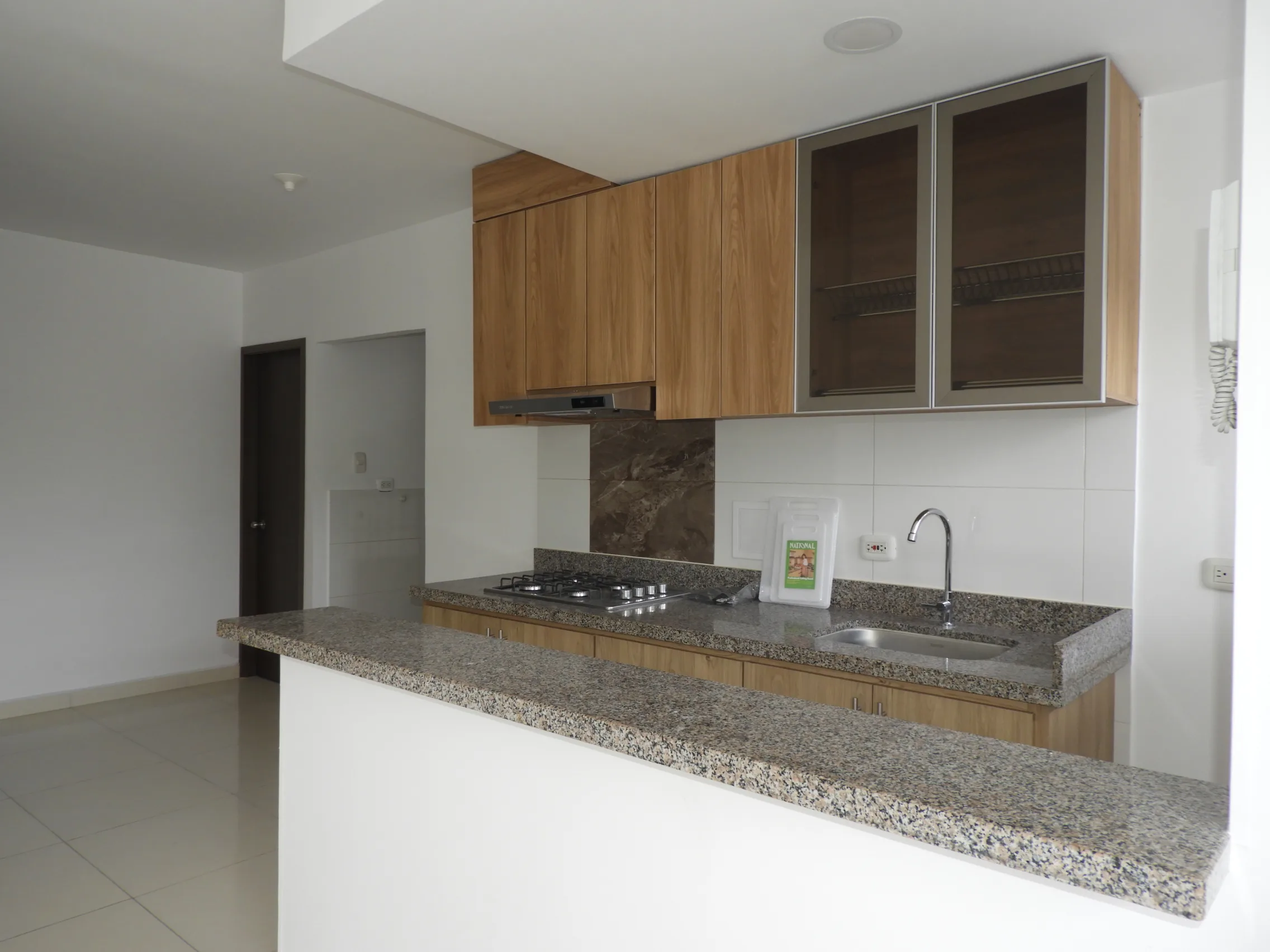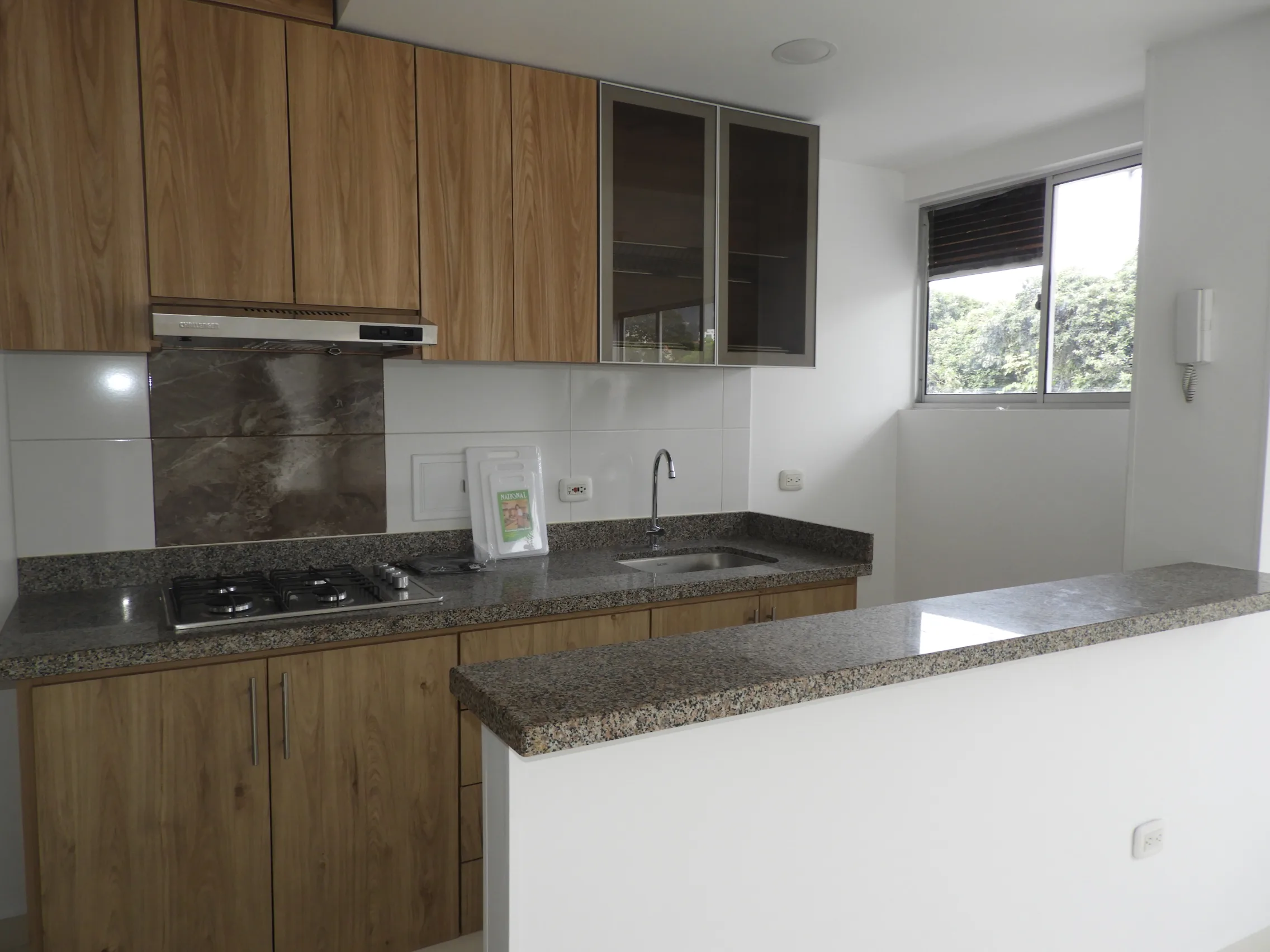 El corazón de este hogar es su impresionante cocina integral de concepto abierto, un espacio donde la elegancia se encuentra con la practicidad. Sus gabinetes de madera clara y encimeras de granito se complementan a la perfección con una moderna barra estilo americano, ideal para desayunos rápidos o reuniones informales. Un amplio ventanal no solo inunda el espacio de luz natural, sino que también ofrece vistas agradables que inspiran. El apartamento cuenta con dos baños elegantemente diseñados, garantizando comodidad y privacidad. El dormitorio secundario, con su ambiente neutro, es un lienzo en blanco esperando ser transformado en su santuario personal.