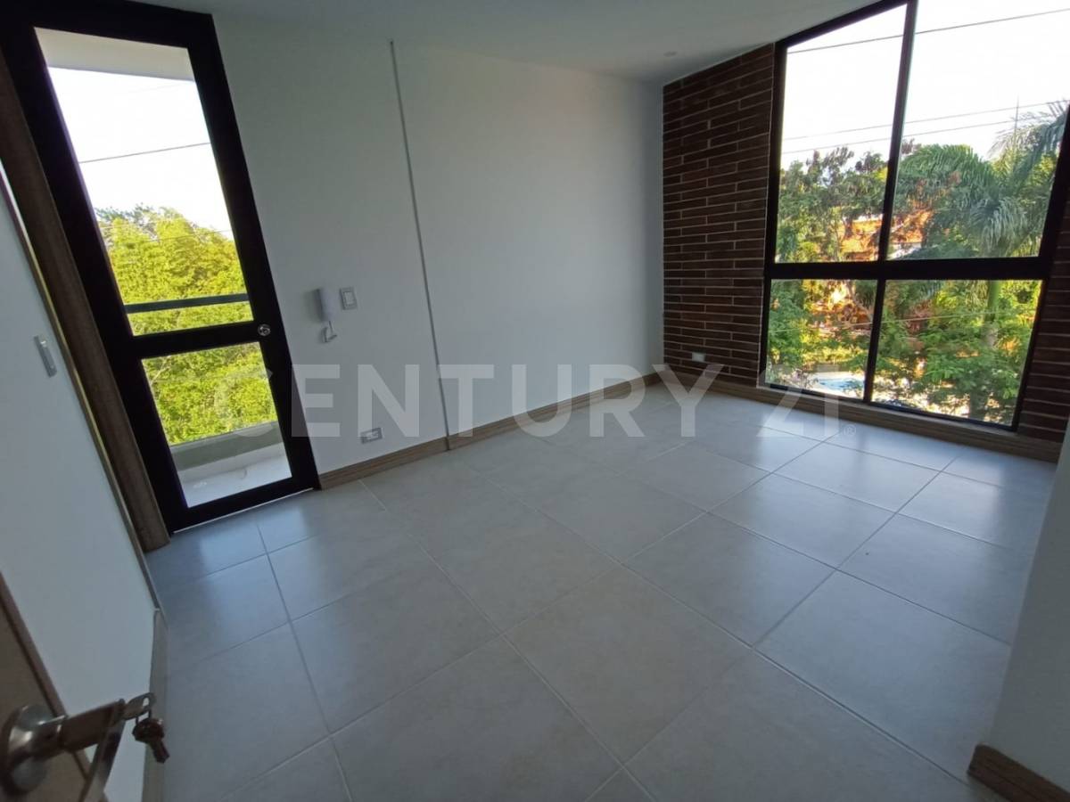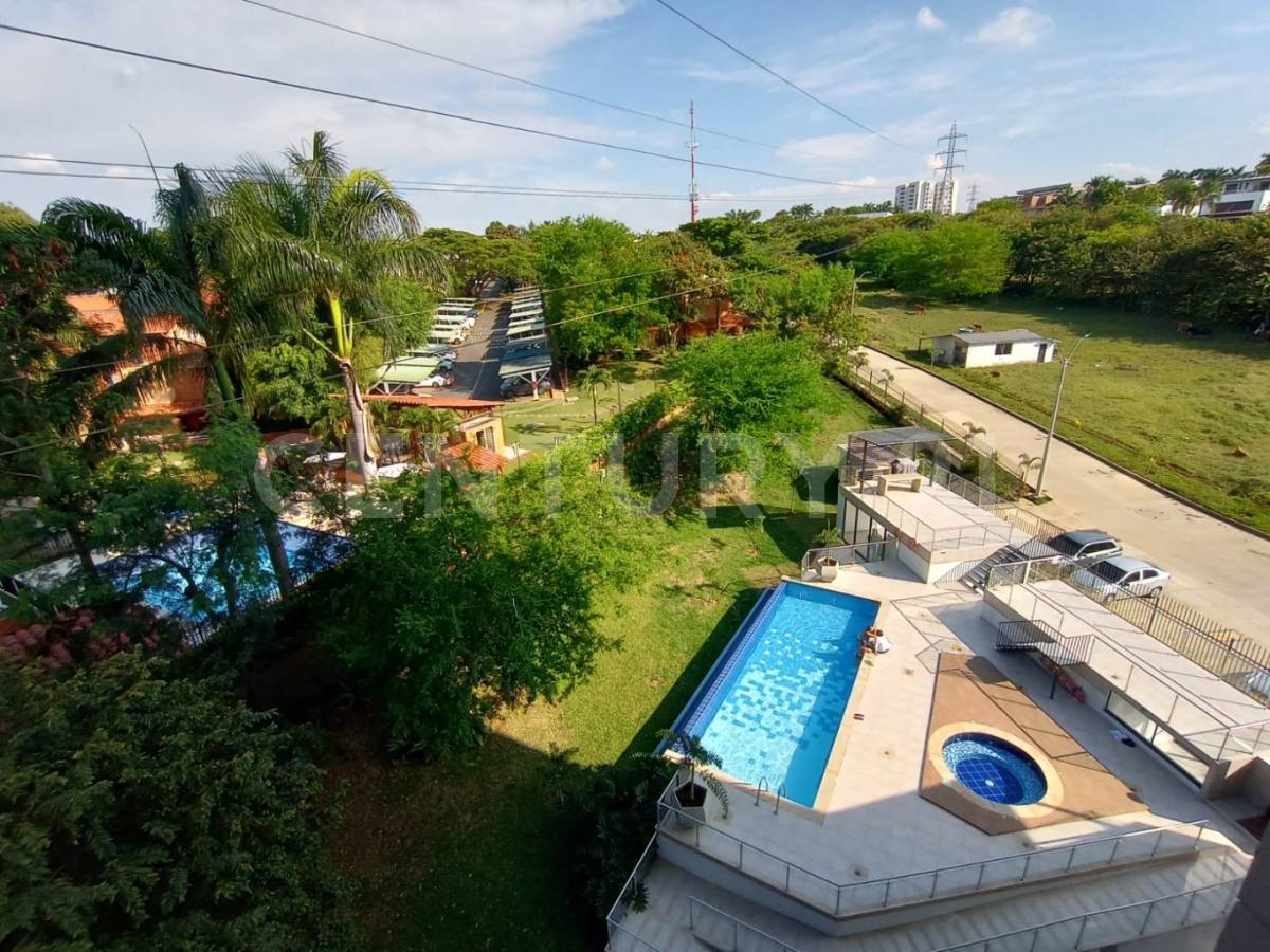 Alquiler de apartamento en 5 piso, para estrenar con hermoso diseño contemporáneo, ubicado en sector exclusivo de Pance, cerca a las mejores universidades y colegios de Cali, cerca a restaurantes, centros comerciales; además de contar con una ubicación estratégica, el edificio se destaca por contar con un gran parque de mas de 1.670 m2, lleno de naturaleza y zonas verdes que se pueden disfrutar a través de un sendero ecológico, el conjunto cuenta con piscina, jacuzzy, zona BBQ, salón de yoga, salón múltiple, centro de negocios, lobby., el aparta estudió esta conformado por sala- comedor, balcón, cocina americana con horno, baño social, zona de oficios, amplia habitación con baño, Vestier y un pequeño balcón, todo rodeado de grandes ventanales que le permiten ventilación, iluminación y hermosa vista, cuenta con parqueadero propio en sótano, un lugar exclusivo y confortable.