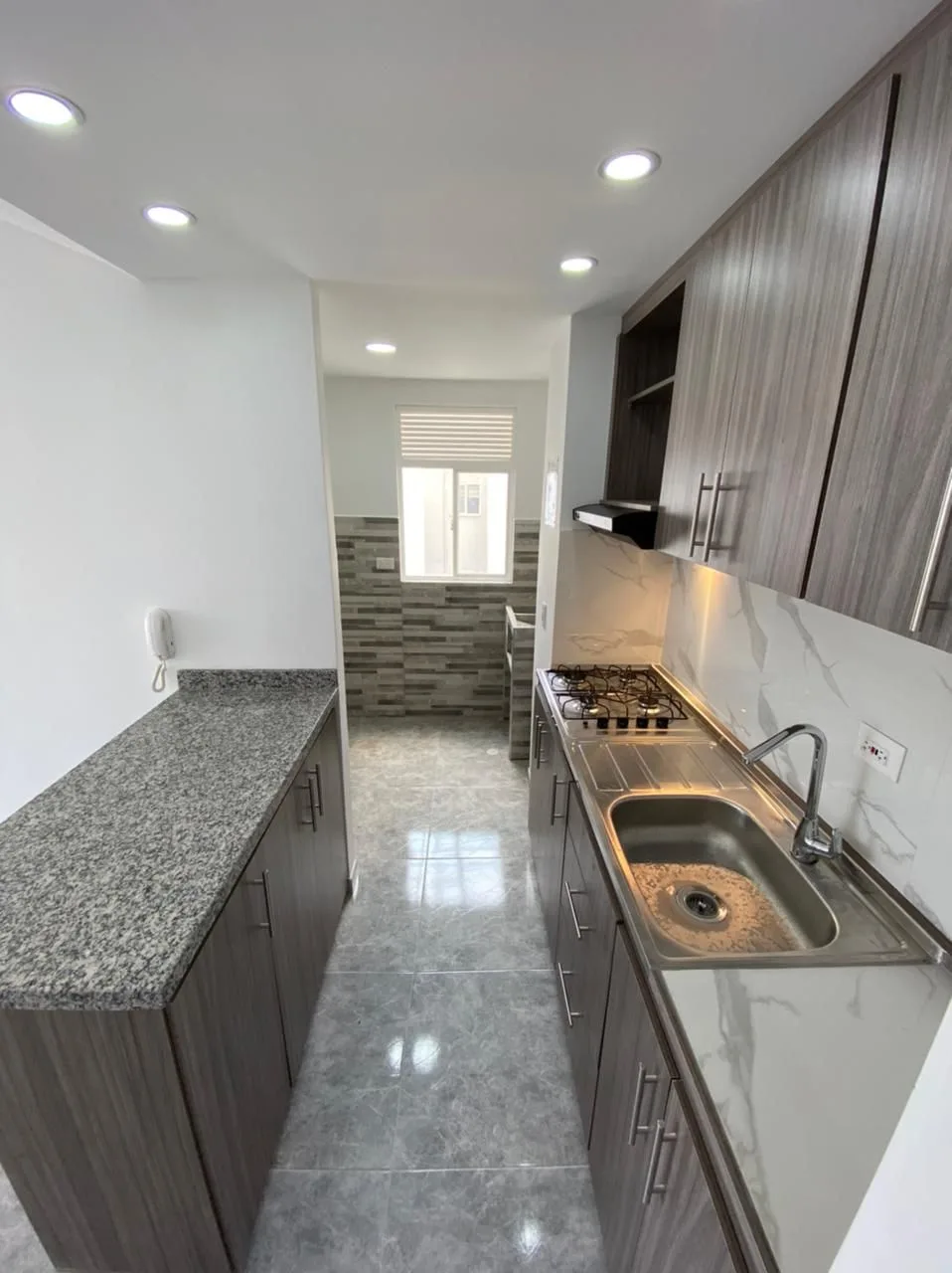 - Zona de oficios totalmente enchapada, espacio para lavadora y nevera