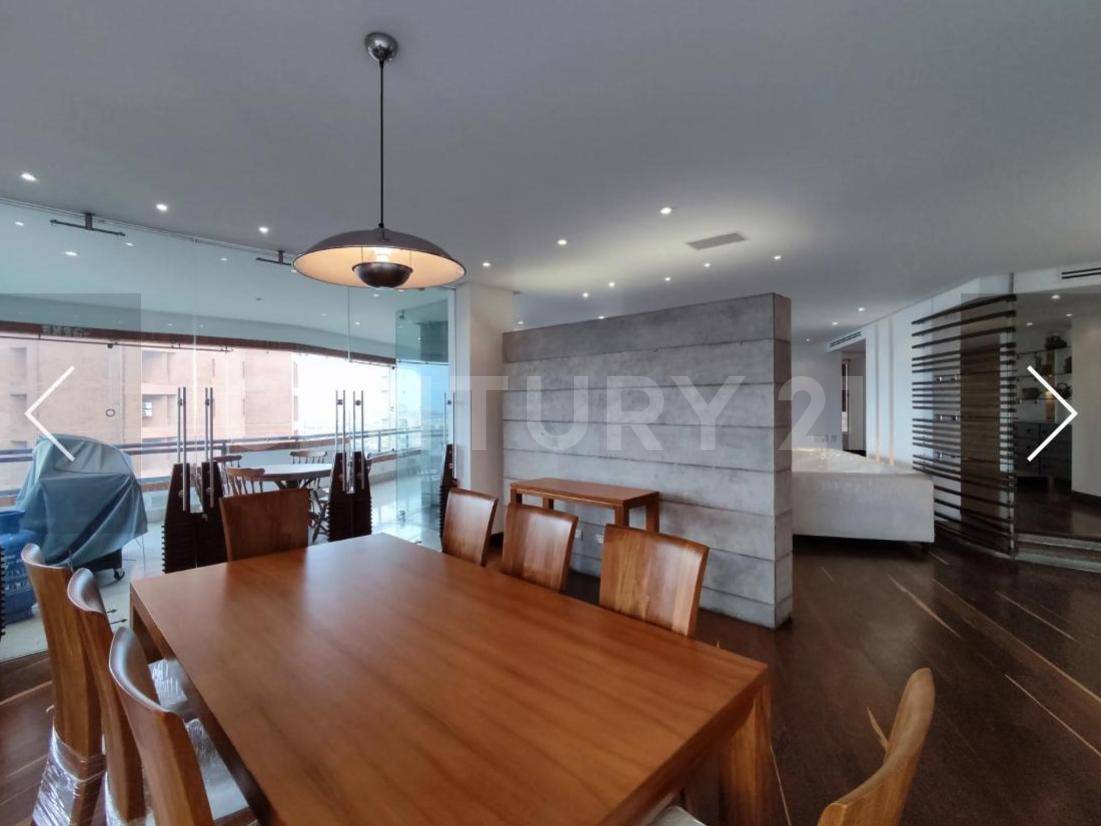 Vive en un sector exclusivo con comodidad, seguridad y excelente ubicación en este amplio y acogedor apartamento ubicado en el privilegiado edificio Palmar de la Loma. Ideal para quienes buscan un hogar unico, tranquilo, de fácil acceso a servicios y una zona residencial de alta valorización. Apartamento en noveno piso, area de 435m2 construidos, distribuidos en 2 habitaciones auxiliares con baño privado, habitación principal con baño y vestier, sala de TV, balcon muy amplio conectado con sala y comedor, baño social, amplia sala, estudio y comedor independientes, cocina amplia con Isla , zona de ropas , cuarto y baño del servicio , 3 garages y 2 depósitos. Se remodelo completamente con materiales de primera calidad con pisos en madera zapan, porcelanato español en la cocina y baños, baños corona flusher premium, griferias premium, instalaciones hidraulicas y eléctricas, luces con temporizador y dimerizables, divisiones de baño en vidrio templado.