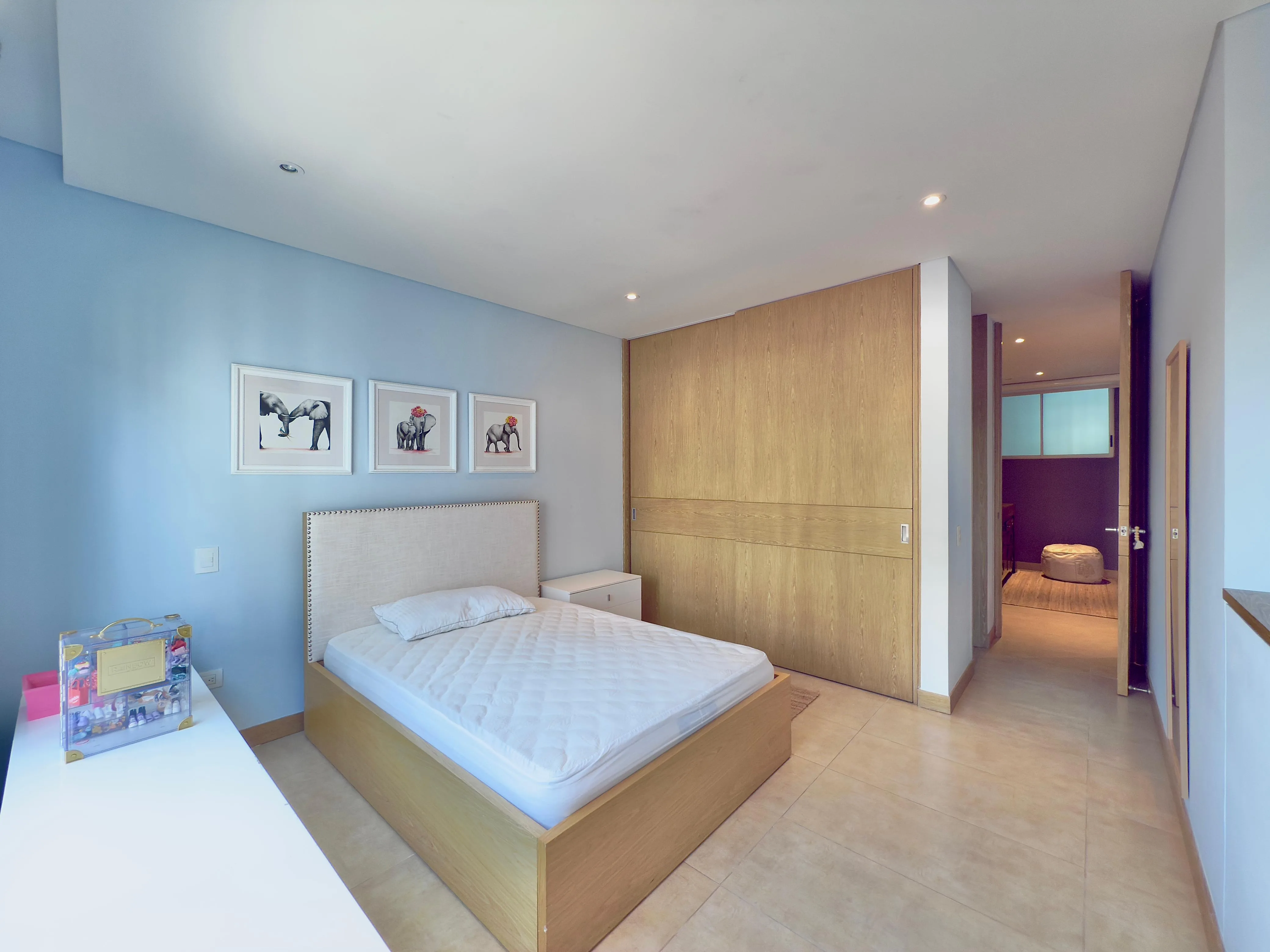 225 m², piso 6, vista panorámica, fresco e iluminado. 3 alcobas con baño (principal con vestier y balcón), estudio, sala de TV, baño social, amplia sala-comedor, cocina integral, zona de servicio, depósito y 3 parqueaderos.