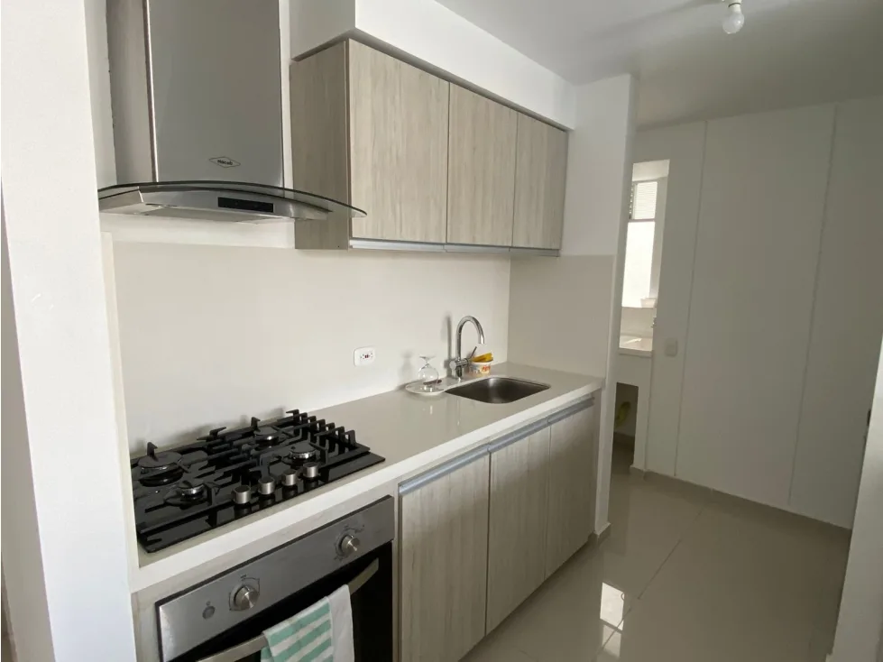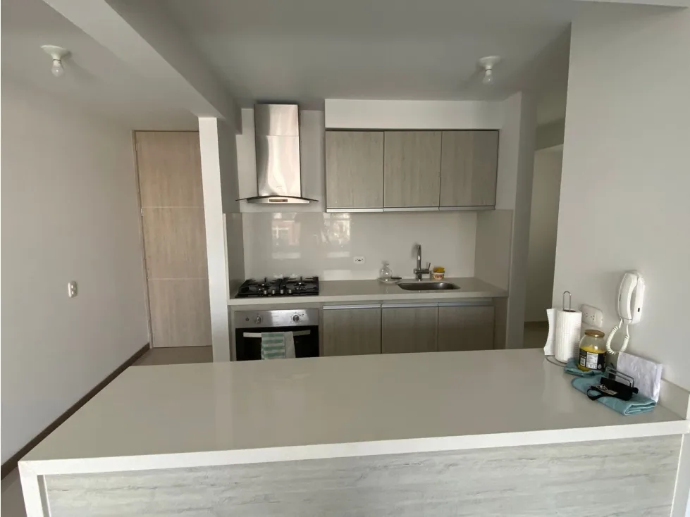 Distribución: 2 alcobas, 3 baños, estudio, cocina integral, balcón, parqueadero propio.